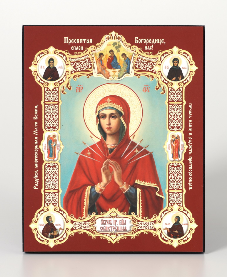 Икона на деревянном планшете 13х18 конгрев, плёнка (18мм) Семистрельная (с клеймами)