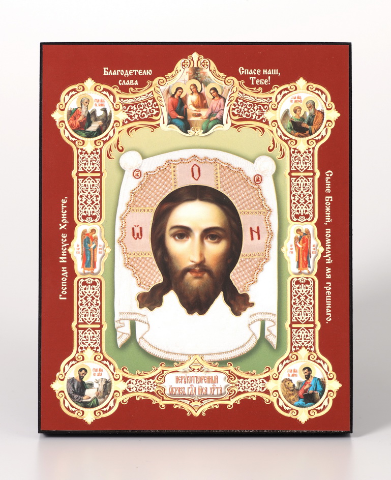 Икона на деревянном планшете 13х18 конгрев, плёнка (18мм) Спас Нерукотворный (с клеймами)