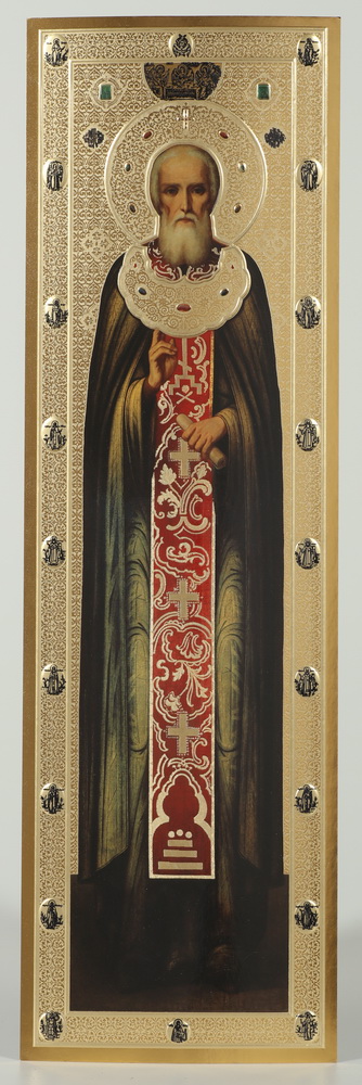 Икона на деревянном планшете 14х45 конгрев, ДСП, ПВХ, упаковка Сергий Радонежский (ростовой)