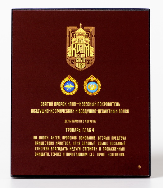 Данная икона была изготовлена ко дню Великого Освящения Святейшим Патриархом Московским и Всея Руси Кириллом Главного Храма Вооруженных Сил Российской Федерации и станет замечательным, памятным подарком человеку, связанному с военной службой.