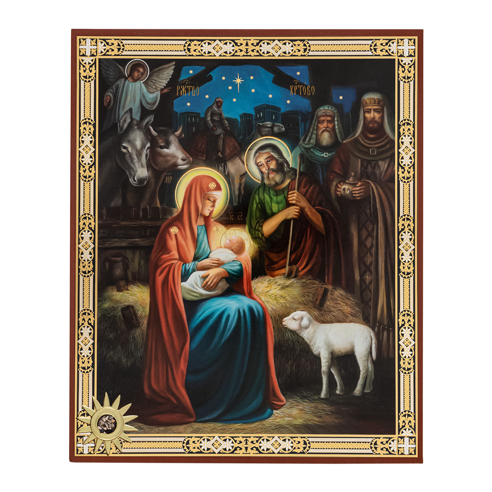 Икона на деревянном планшете 18х24 двойное тиснение, ДСП, ПВХ, БЗГ, упаковка Рождество Христово 67