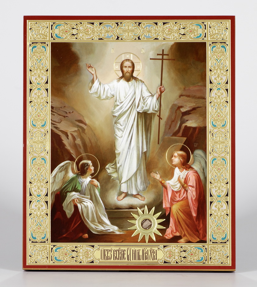 Икона на деревянном планшете 18х24 двойное тиснение, ДСП, ПВХ, БЗГ, упаковка Воскресение Христово 64
