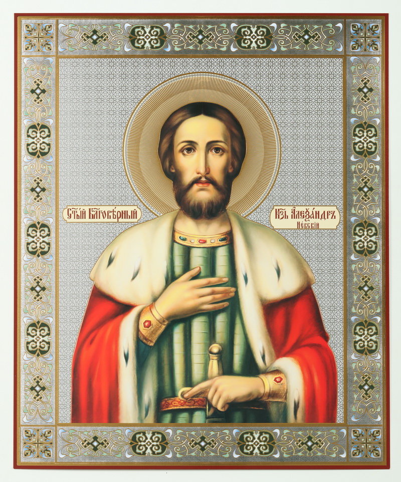 Икона на деревянном планшете 30х40 двойное тиснение, ДСП, ПВХ Александр Невский