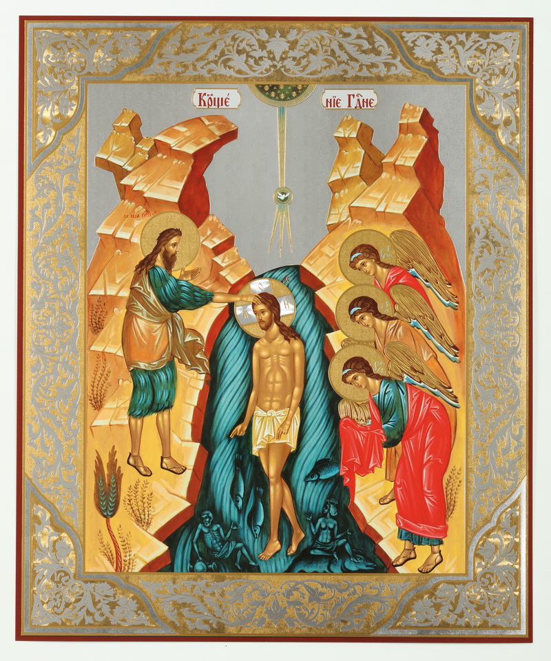 Икона на деревянном планшете 30х40 двойное тиснение, ДСП, ПВХ Богоявление