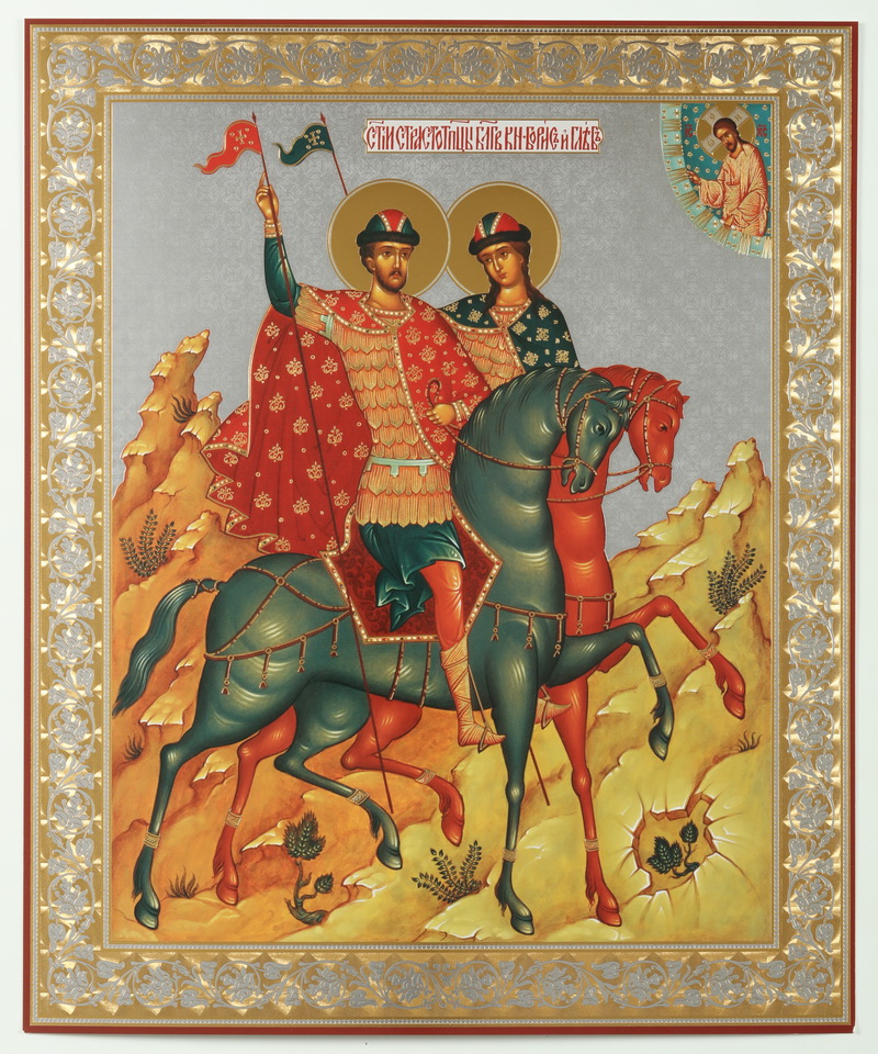 Икона на деревянном планшете 30х40 двойное тиснение, ДСП, ПВХ Борис и Глеб
