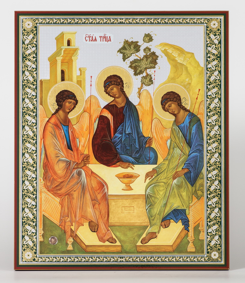 Икона на деревянном планшете 30х40 двойное тиснение, ДСП, ПВХ, БЗГ Троица (Рублевская)
