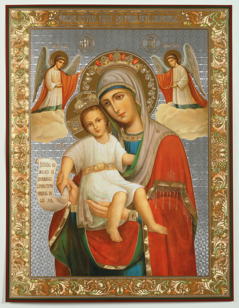 Икона на деревянном планшете 30х40 двойное тиснение, ДСП, ПВХ Достойно Есть