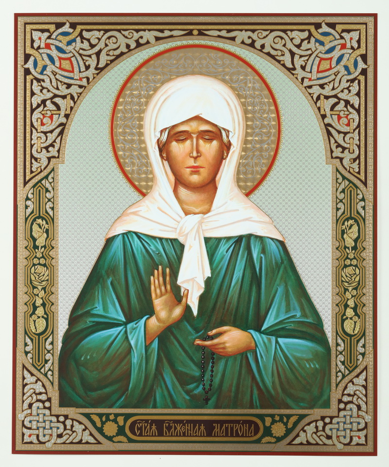 Икона на деревянном планшете 30х40 двойное тиснение, ДСП, ПВХ Матрона Московская (с венчиком)