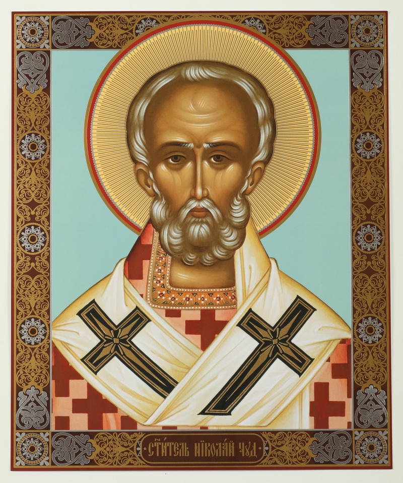 Икона на деревянном планшете 30х40 двойное тиснение, ДСП, ПВХ Николай Чудотворец 25