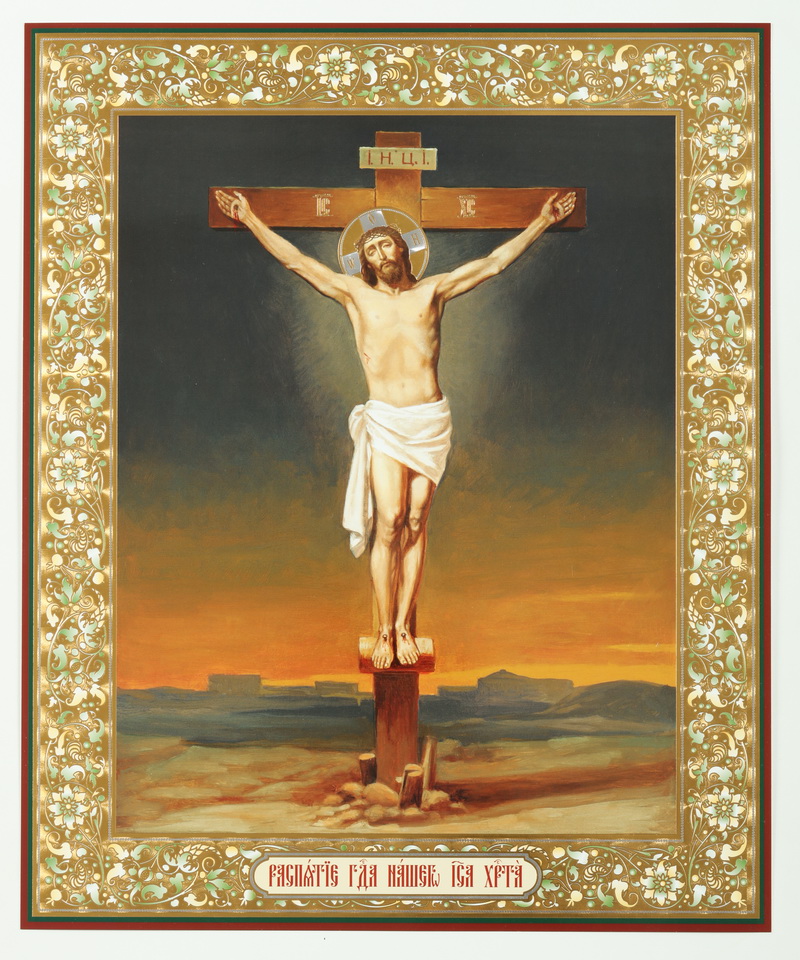 Икона на деревянном планшете 30х40 двойное тиснение, ДСП, ПВХ Распятие