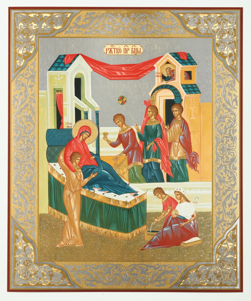 Икона на деревянном планшете 30х40 двойное тиснение, ДСП, ПВХ Рождество Богородицы