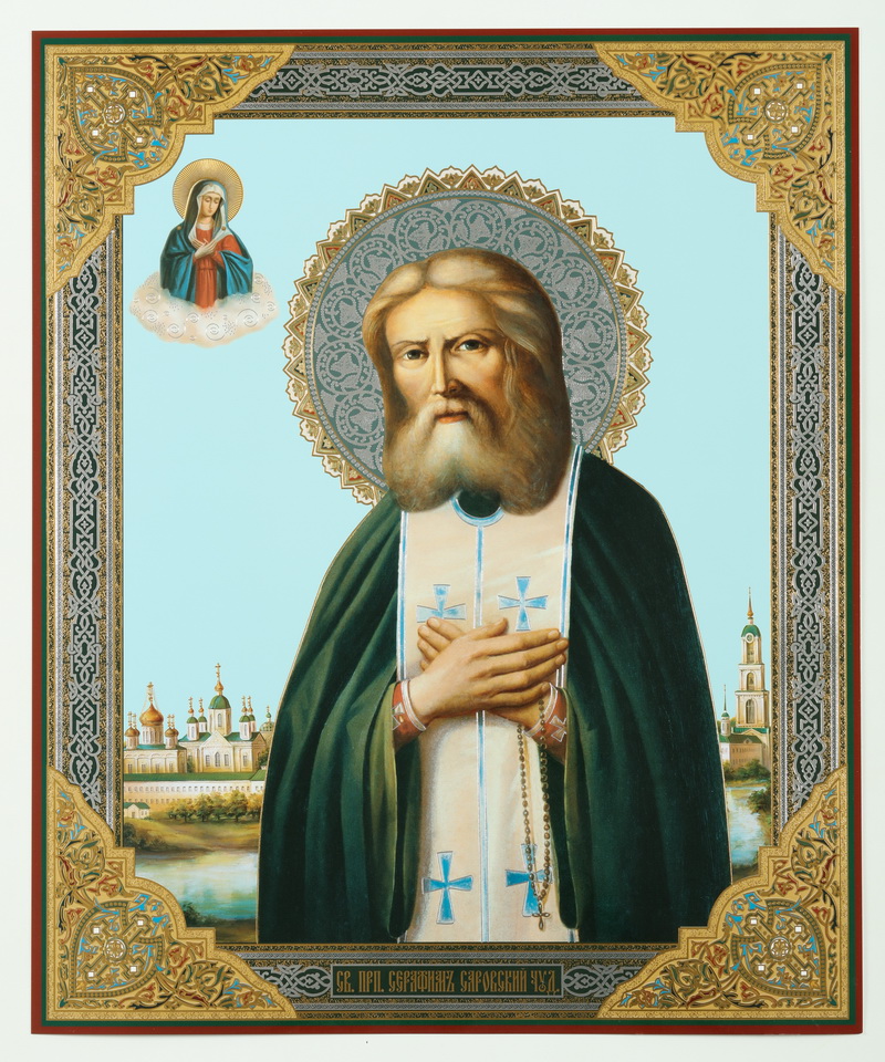 Икона на деревянном планшете 30х40 двойное тиснение, ДСП, ПВХ Серафим Саровский 2