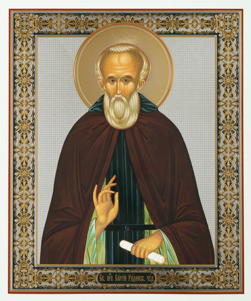 Икона на деревянном планшете 30х40 двойное тиснение, ДСП, ПВХ Сергий Радонежский