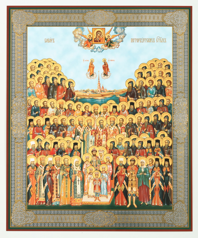 Икона на деревянном планшете 30х40 двойное тиснение, ДСП, ПВХ Собор Петербургских святых