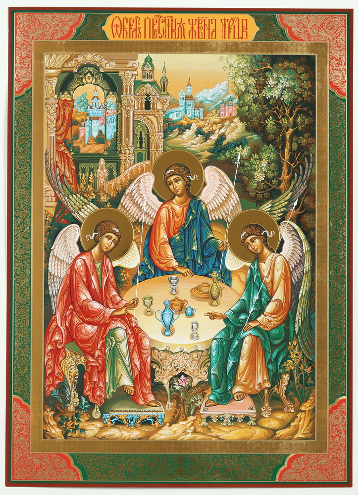 Икона на деревянном планшете 30х40 двойное тиснение, ДСП, ПВХ Троица 01