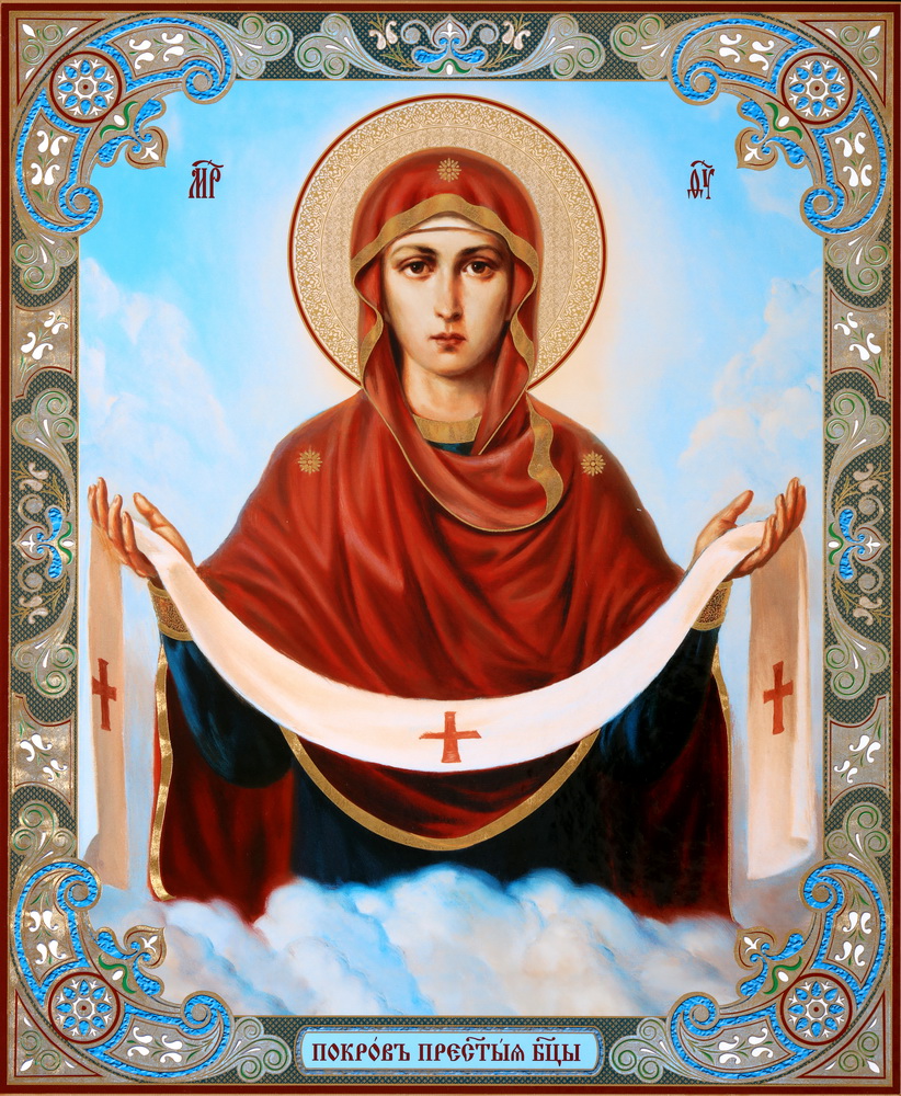 Икона на деревянном планшете 30х40 тиснение, ДСП, ПВХ Покров (поясной)