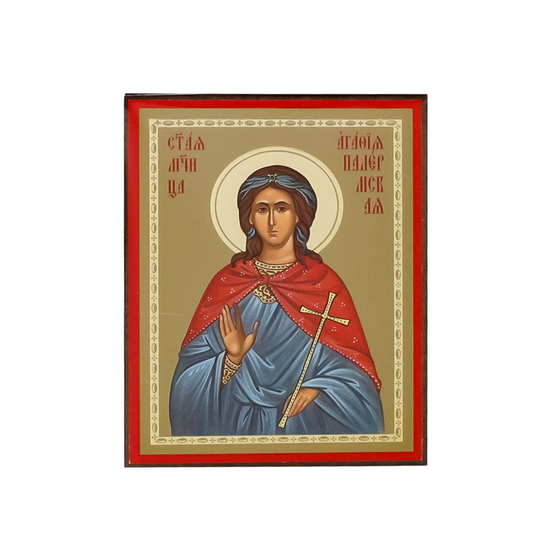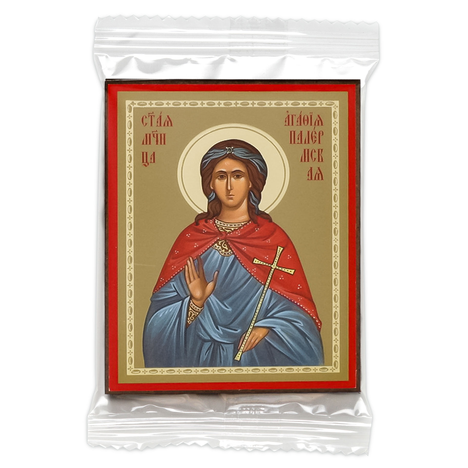 Икона на деревянном планшете 6х9 двойное тиснение, аннотация, упаковка Агафия Палермская