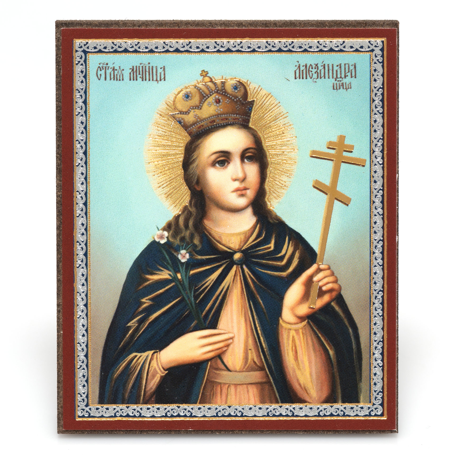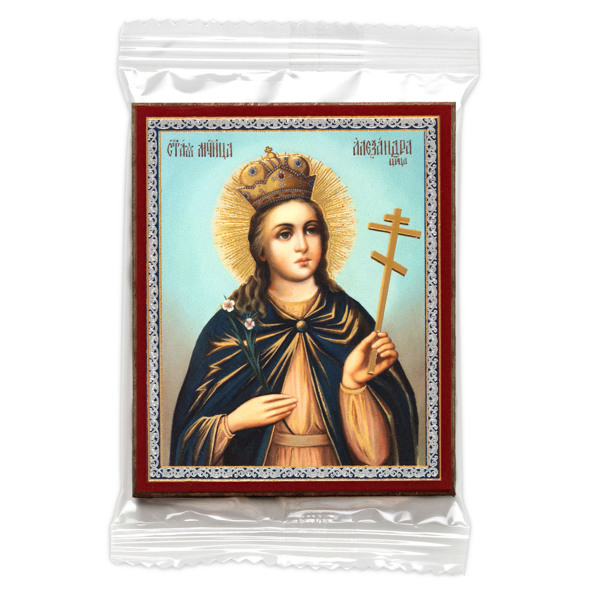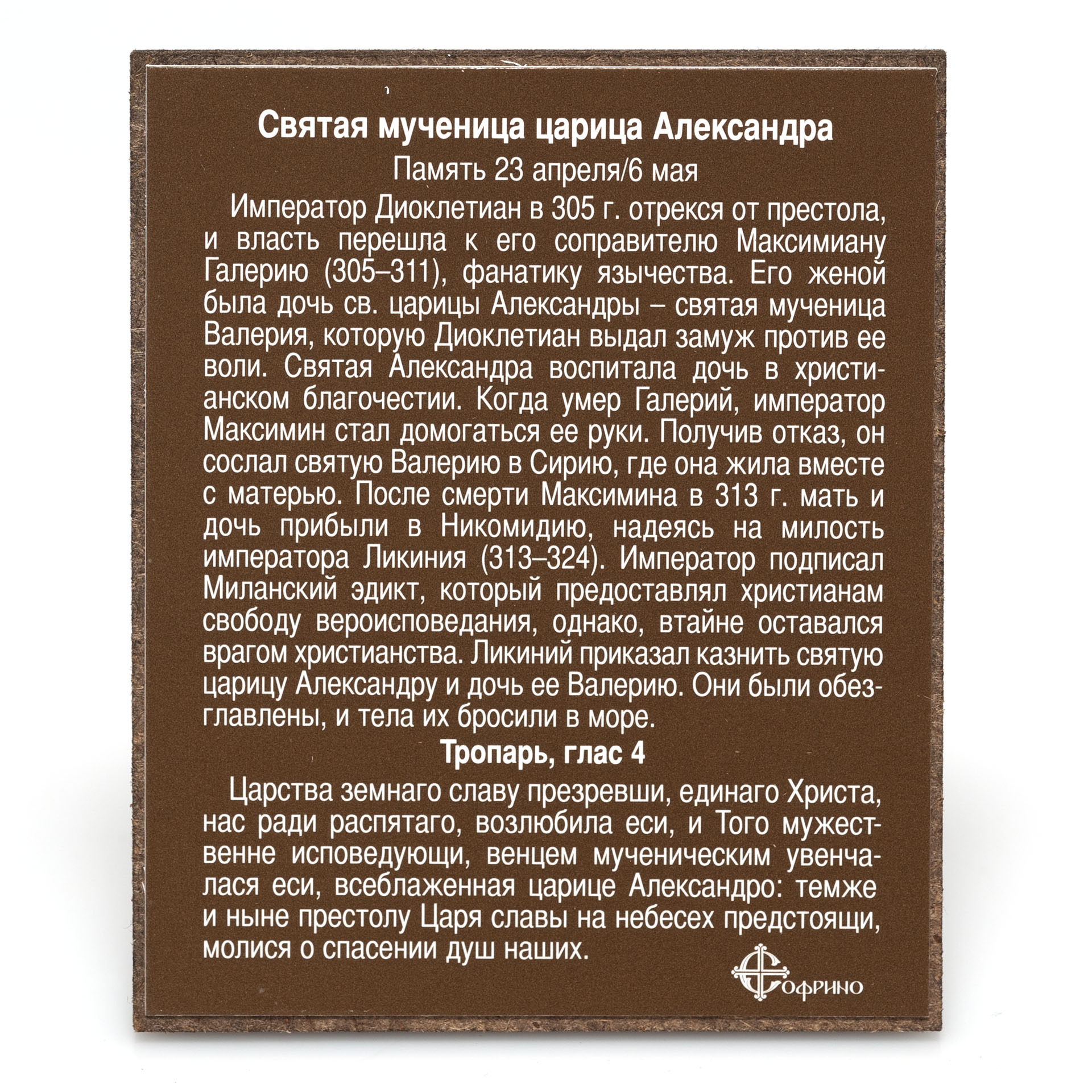 Икона на деревянном планшете 6х9 двойное тиснение, аннотация, упаковка Александра царица, мц. (5)