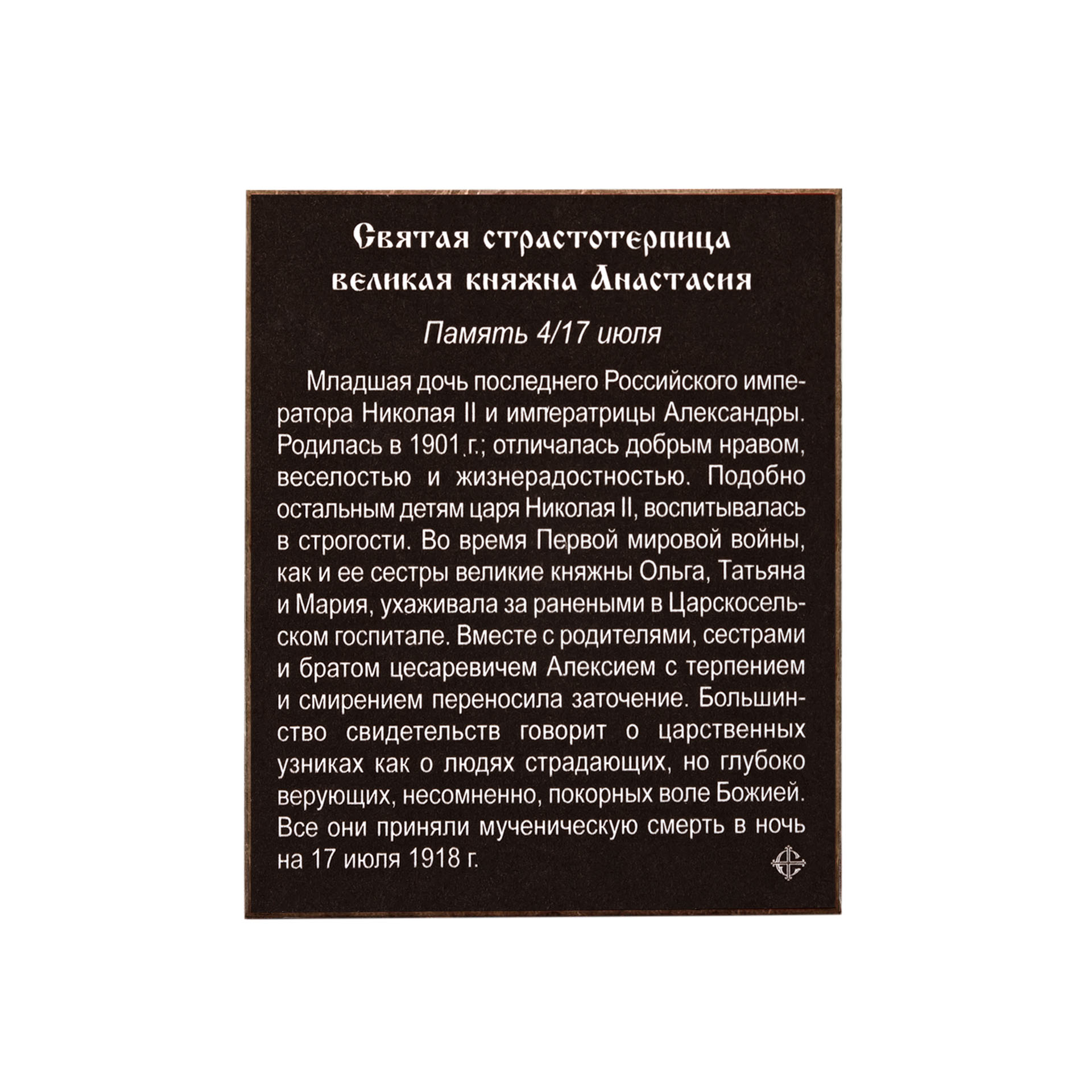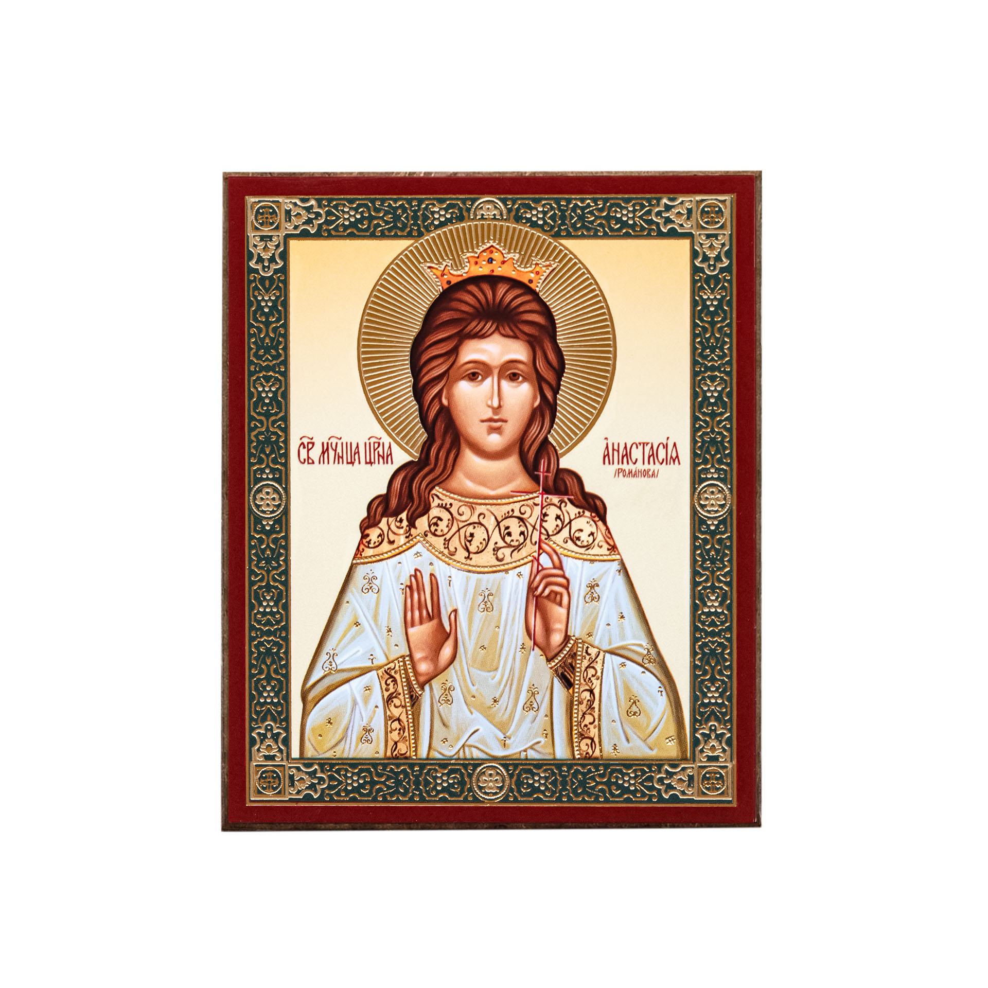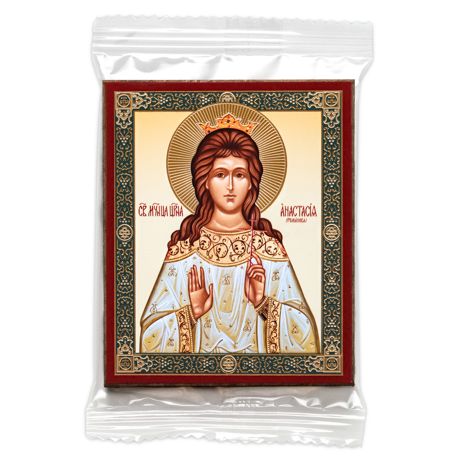 Икона на деревянном планшете 6х9 двойное тиснение, аннотация, упаковка Анастасия, великая княжна