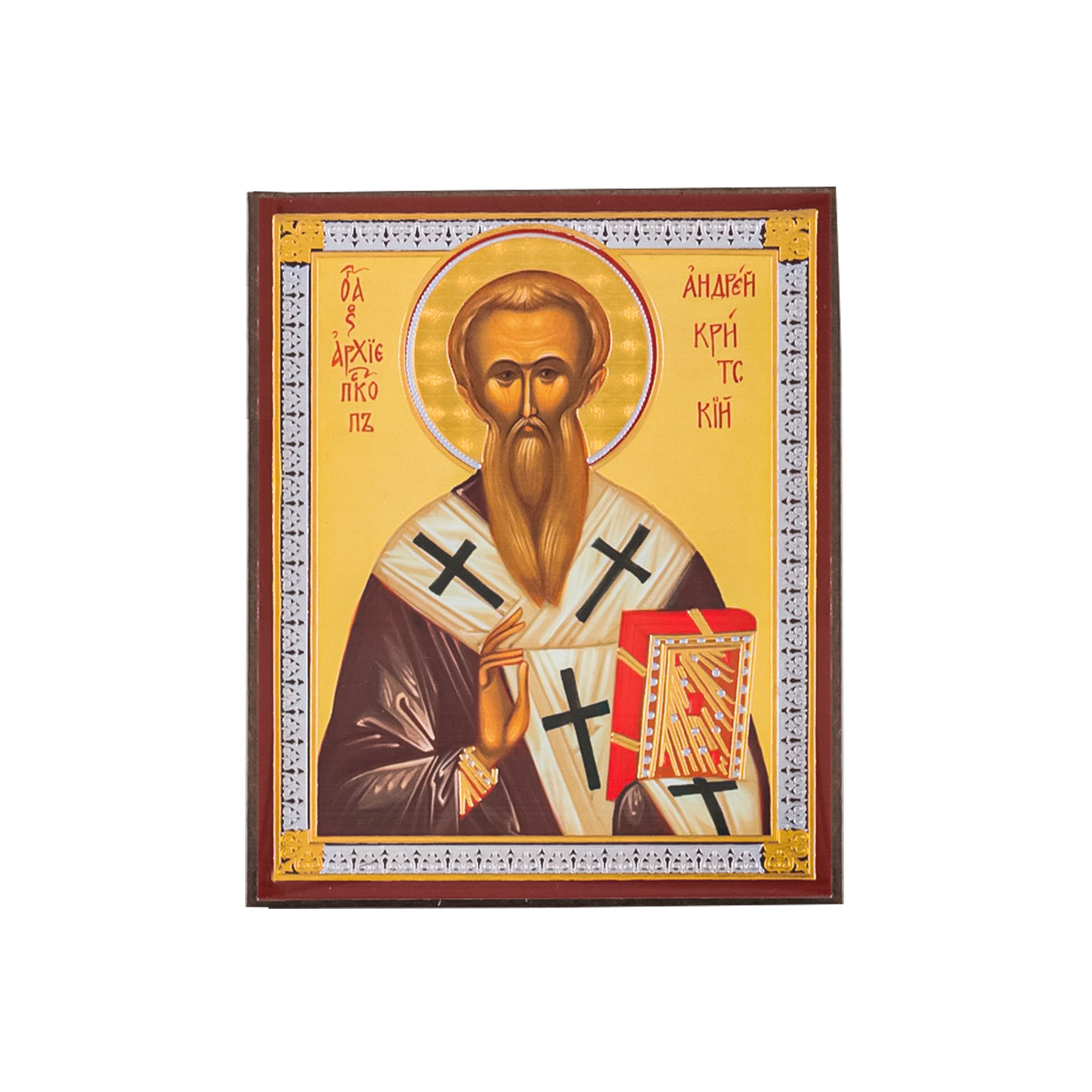 Икона на деревянном планшете 6х9 двойное тиснение, аннотация, упаковка Андрей Критский
