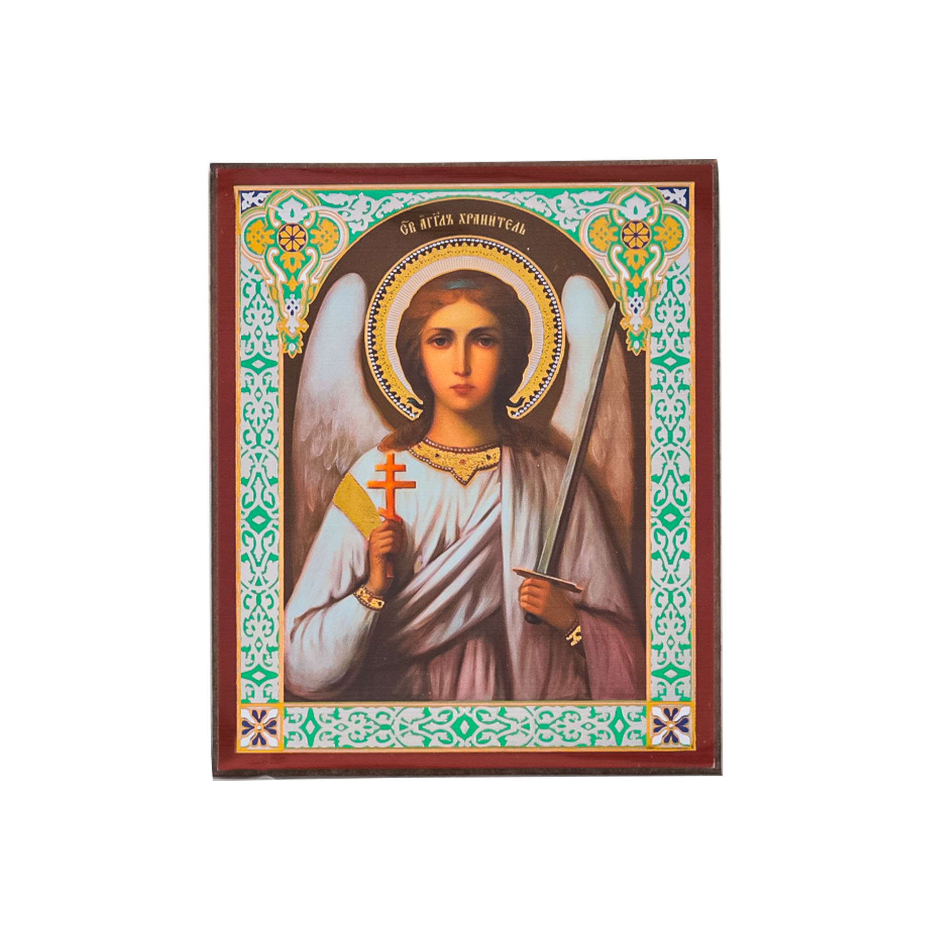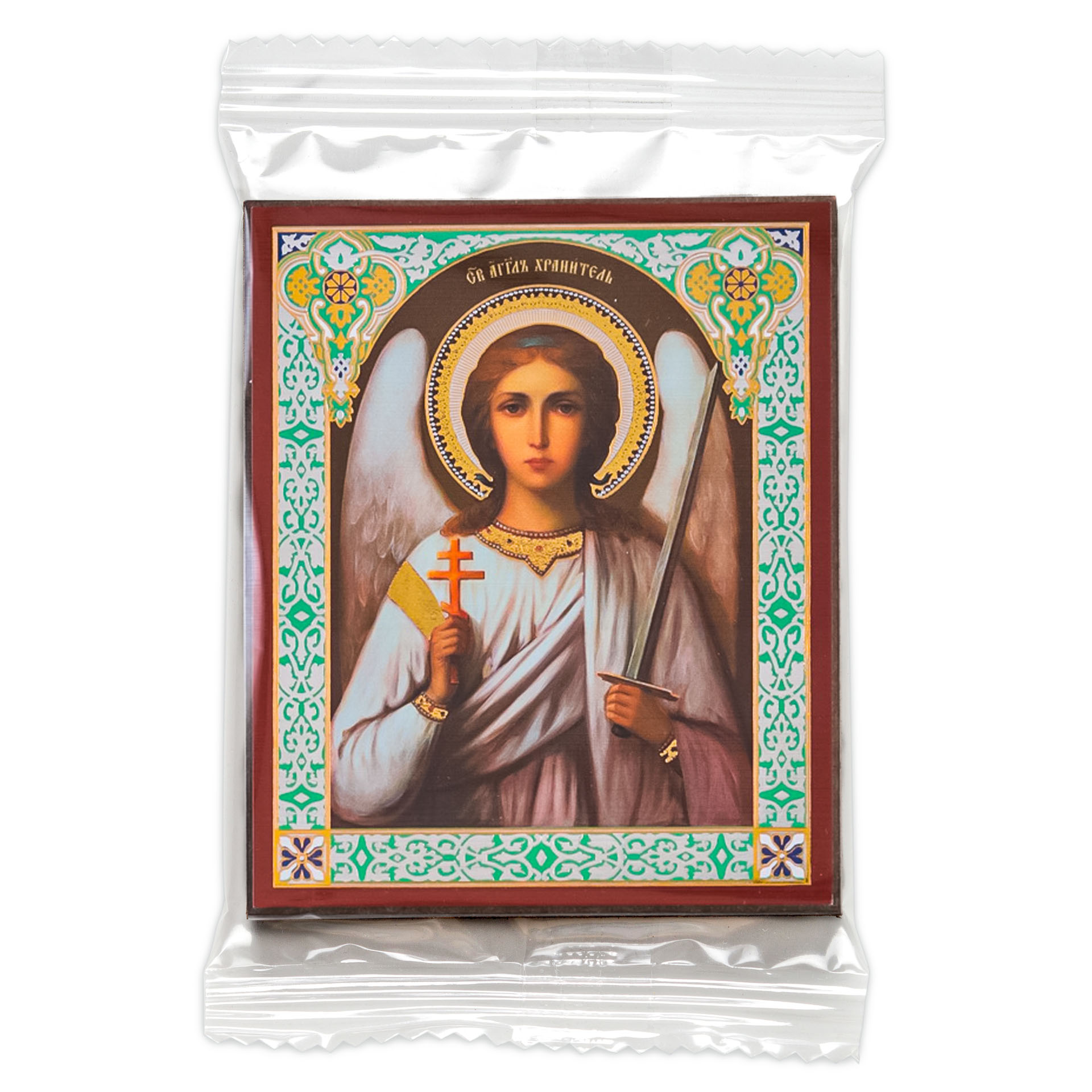 Икона на деревянном планшете 6х9 двойное тиснение, аннотация, упаковка Ангел-Хранитель (поясной) №4