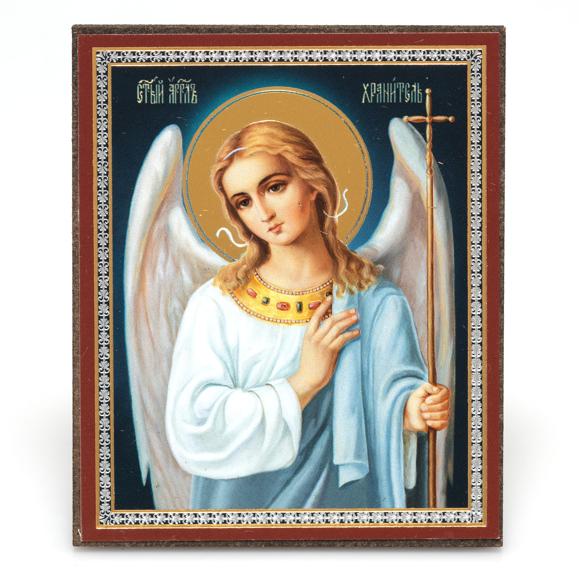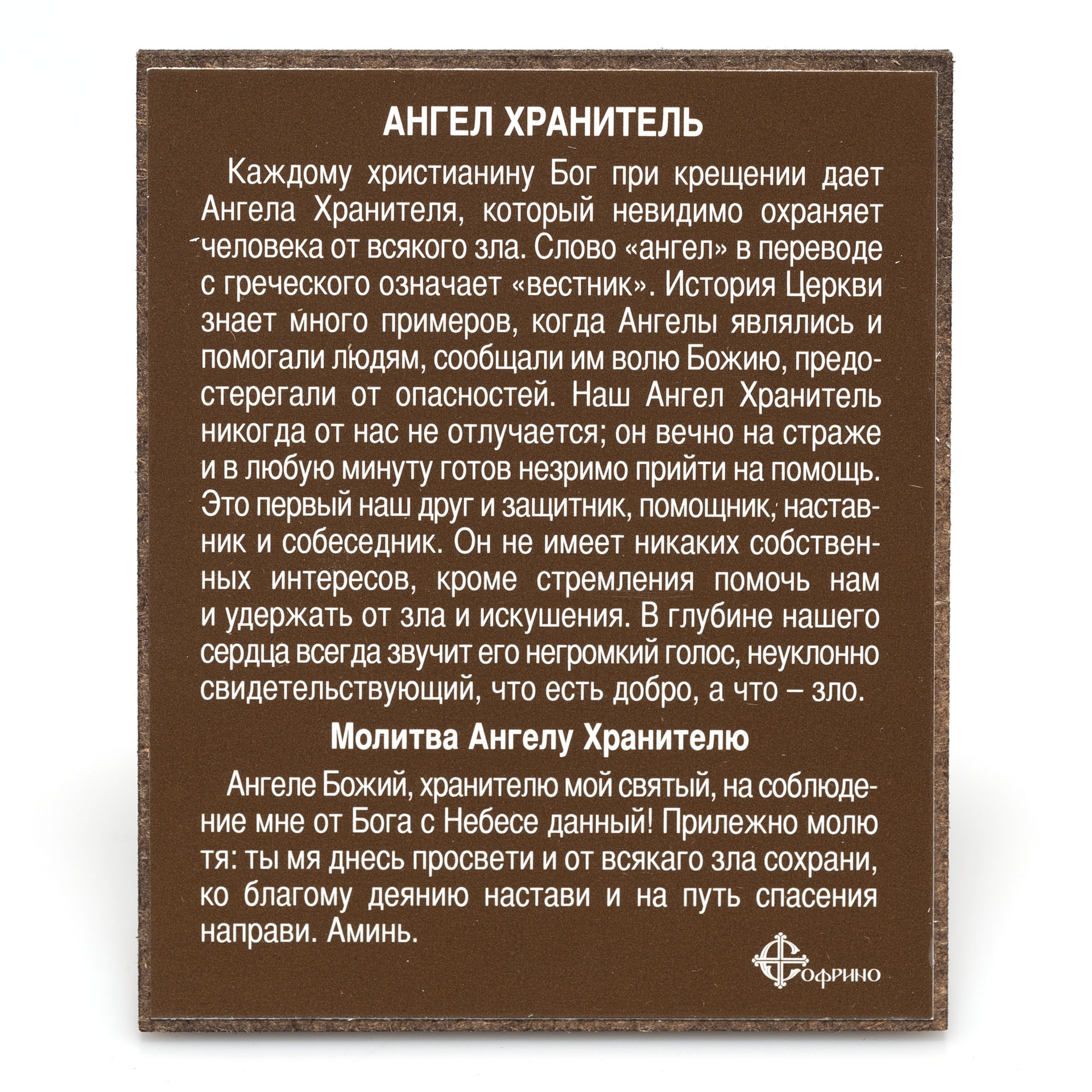 Икона на деревянном планшете 6х9 двойное тиснение, аннотация, упаковка Ангел-Хранитель (поясной) №9