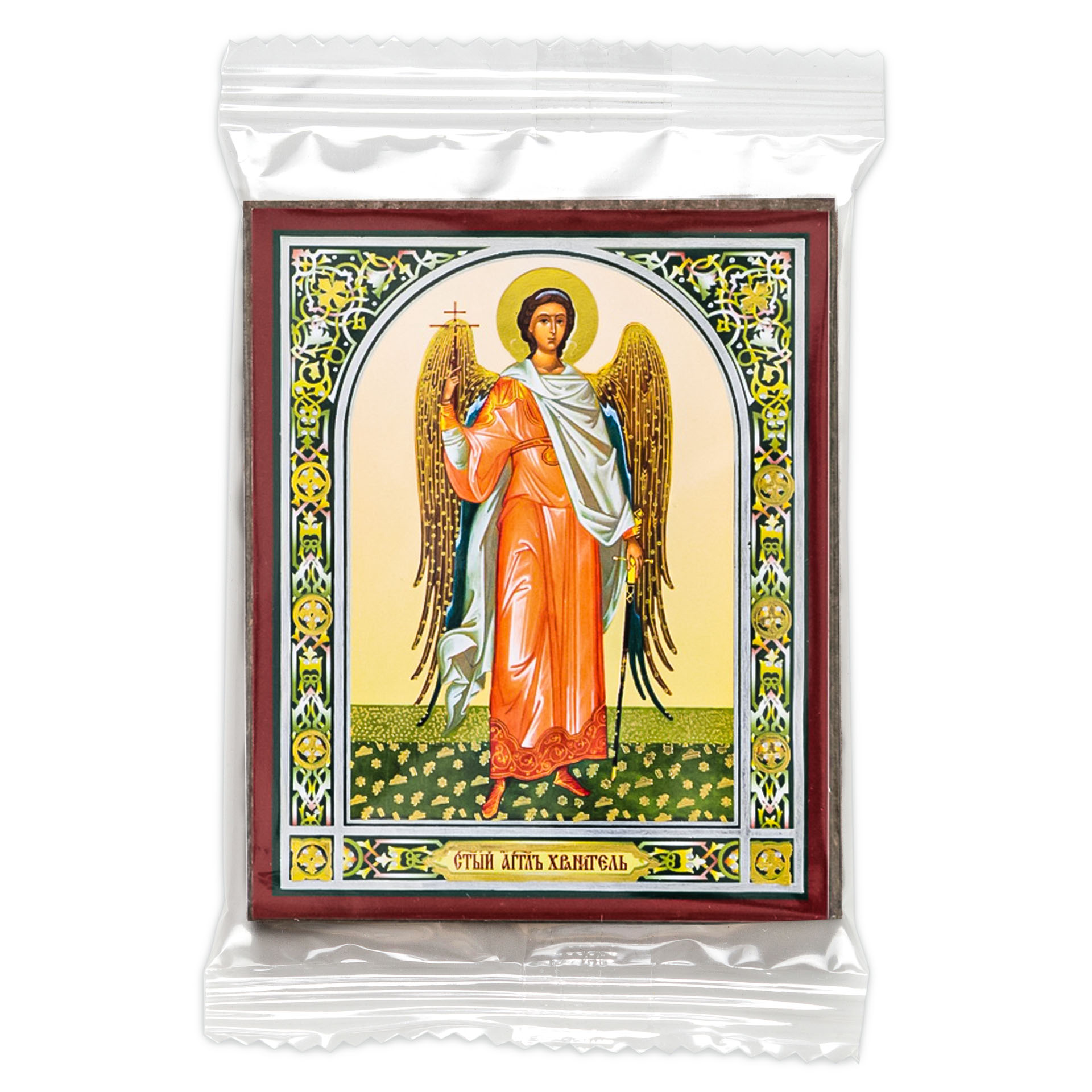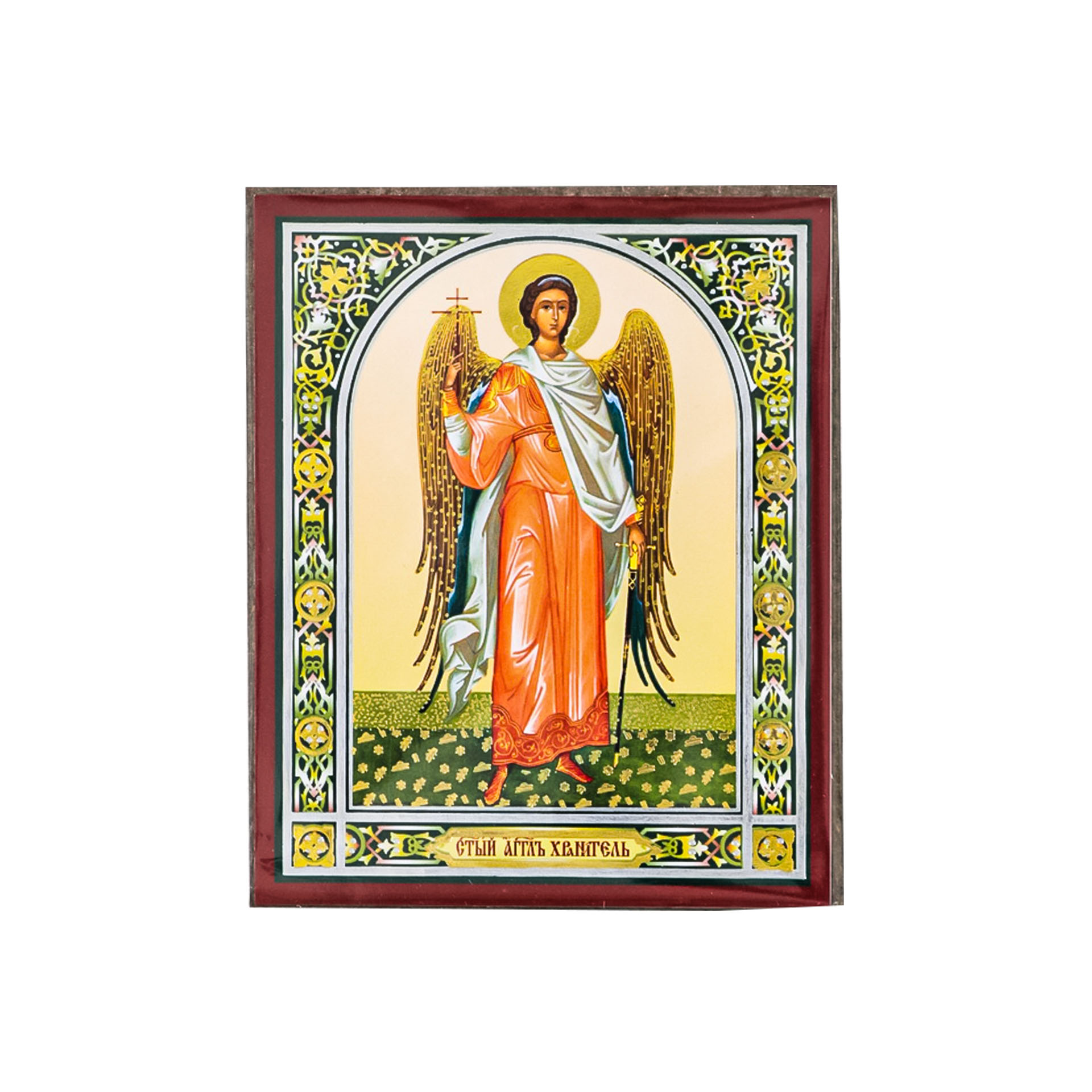 Икона на деревянном планшете 6х9 двойное тиснение, аннотация, упаковка Ангел-Хранитель (ростовой) №3