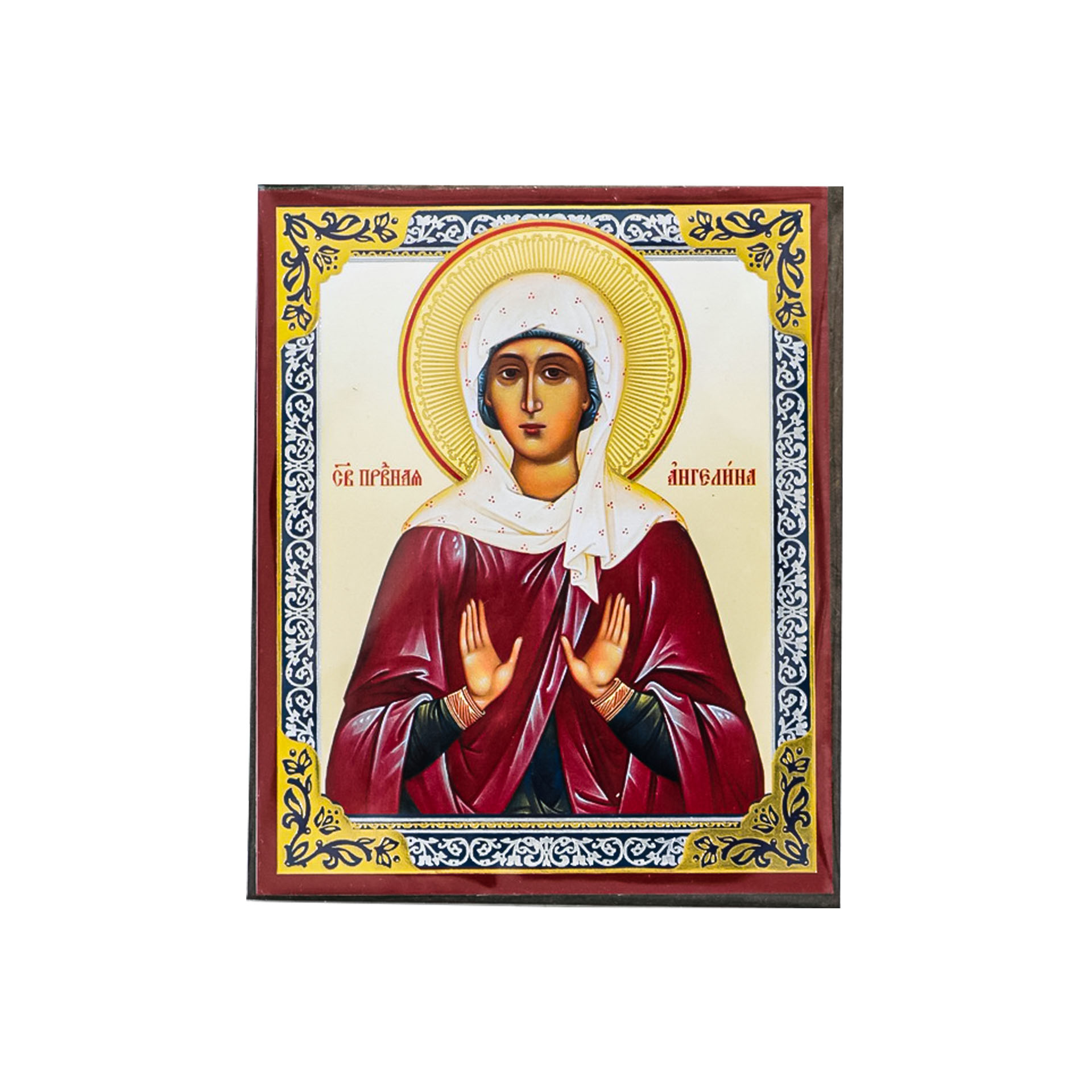 Икона на деревянном планшете 6х9 двойное тиснение, аннотация, упаковка Ангелина Сербская, прав. (3)