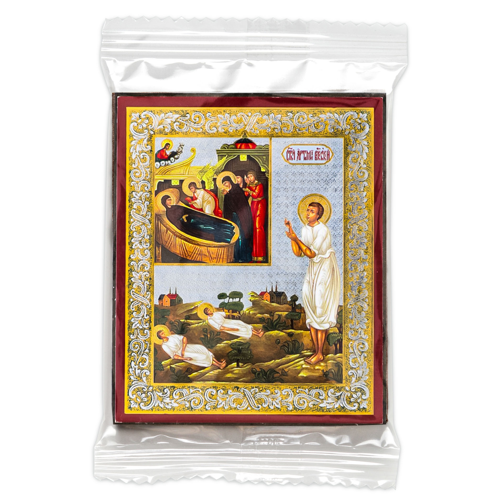 Икона на деревянном планшете 6х9 двойное тиснение, аннотация, упаковка Артемий Веркольский