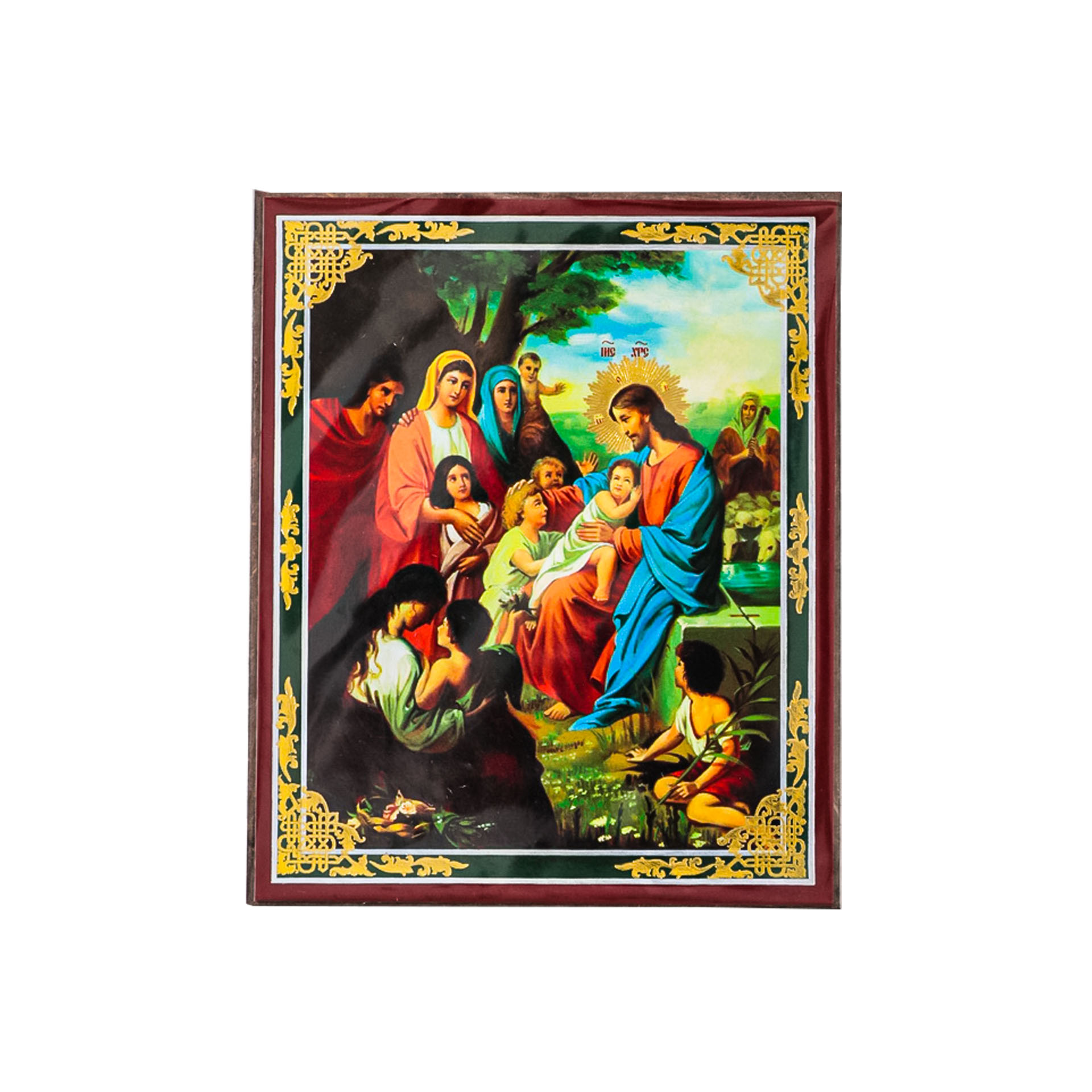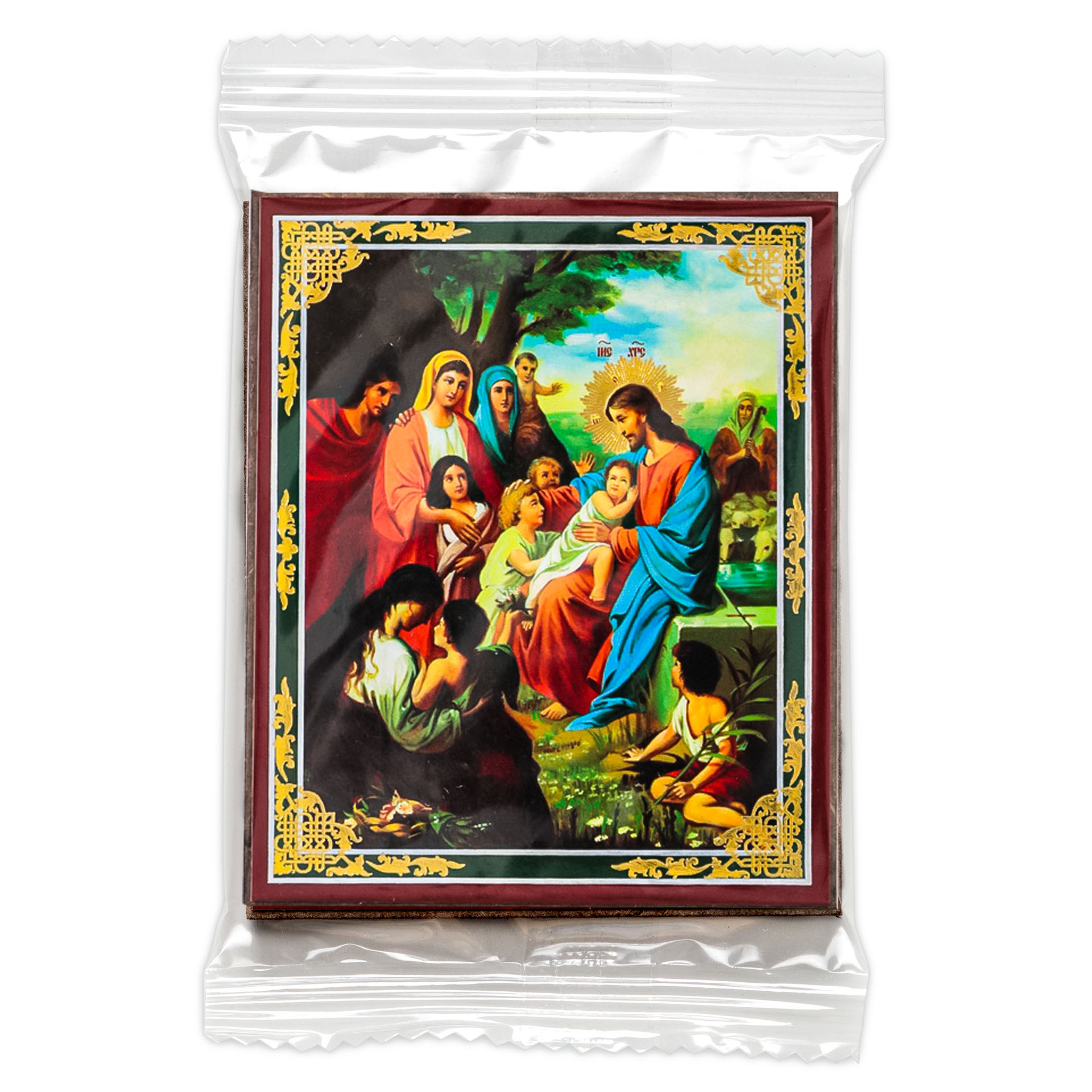 Икона на деревянном планшете 6х9 двойное тиснение, аннотация, упаковка Благословение детей