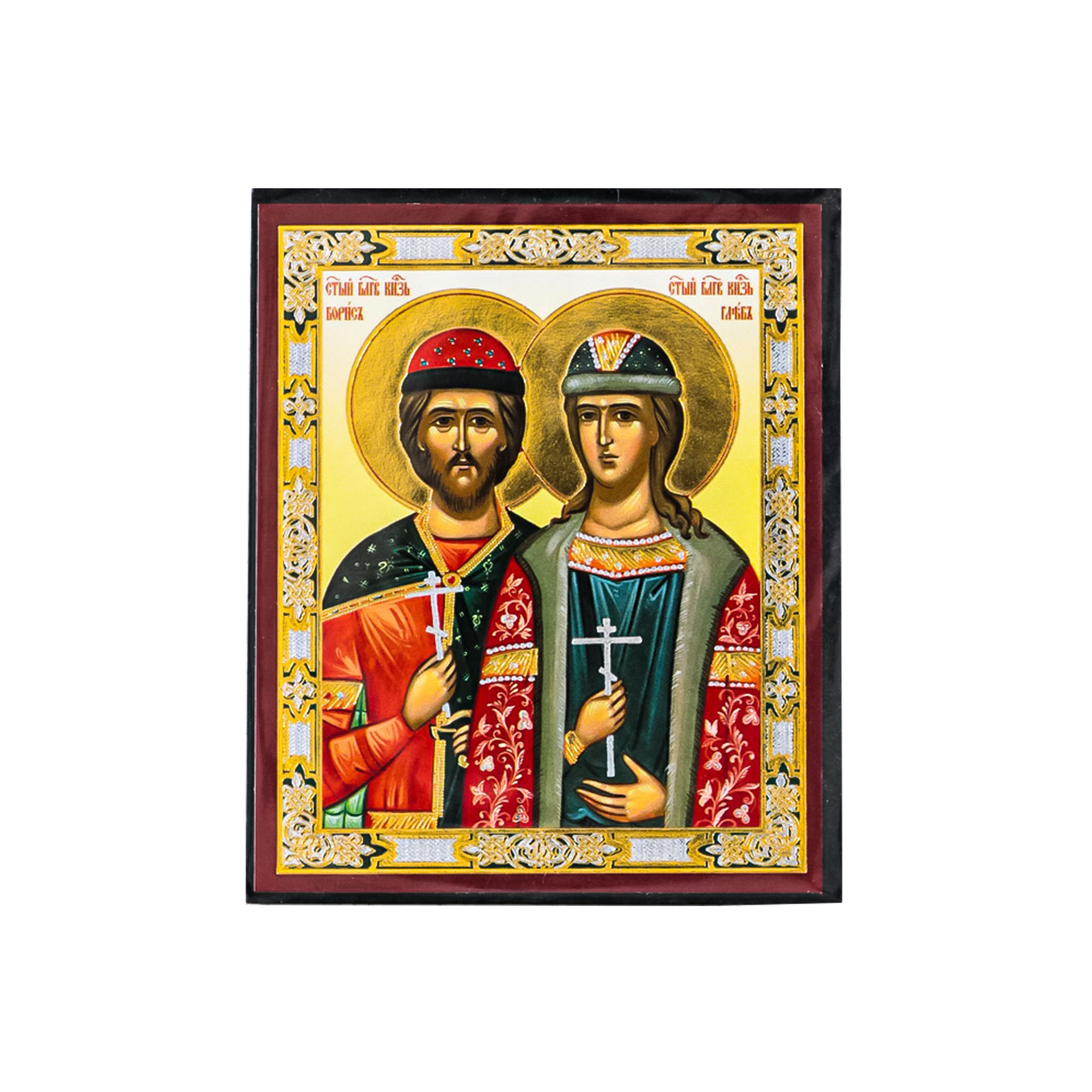 Икона на деревянном планшете 6х9 двойное тиснение, аннотация, упаковка Борис и Глеб 4