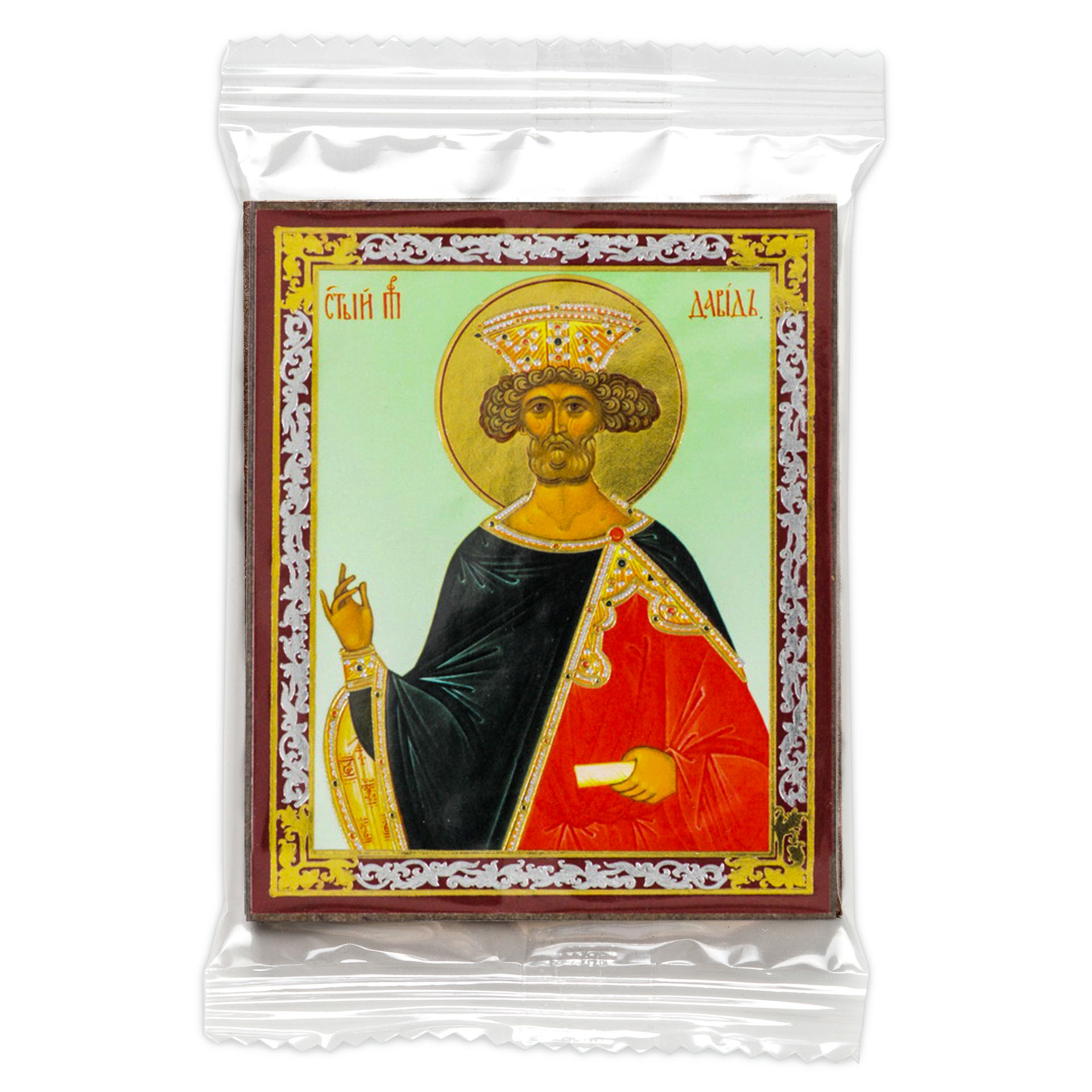 Икона на деревянном планшете 6х9 двойное тиснение, аннотация, упаковка Давид