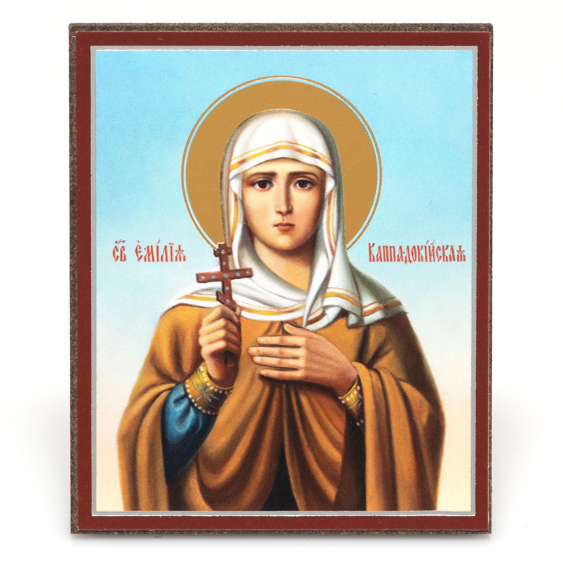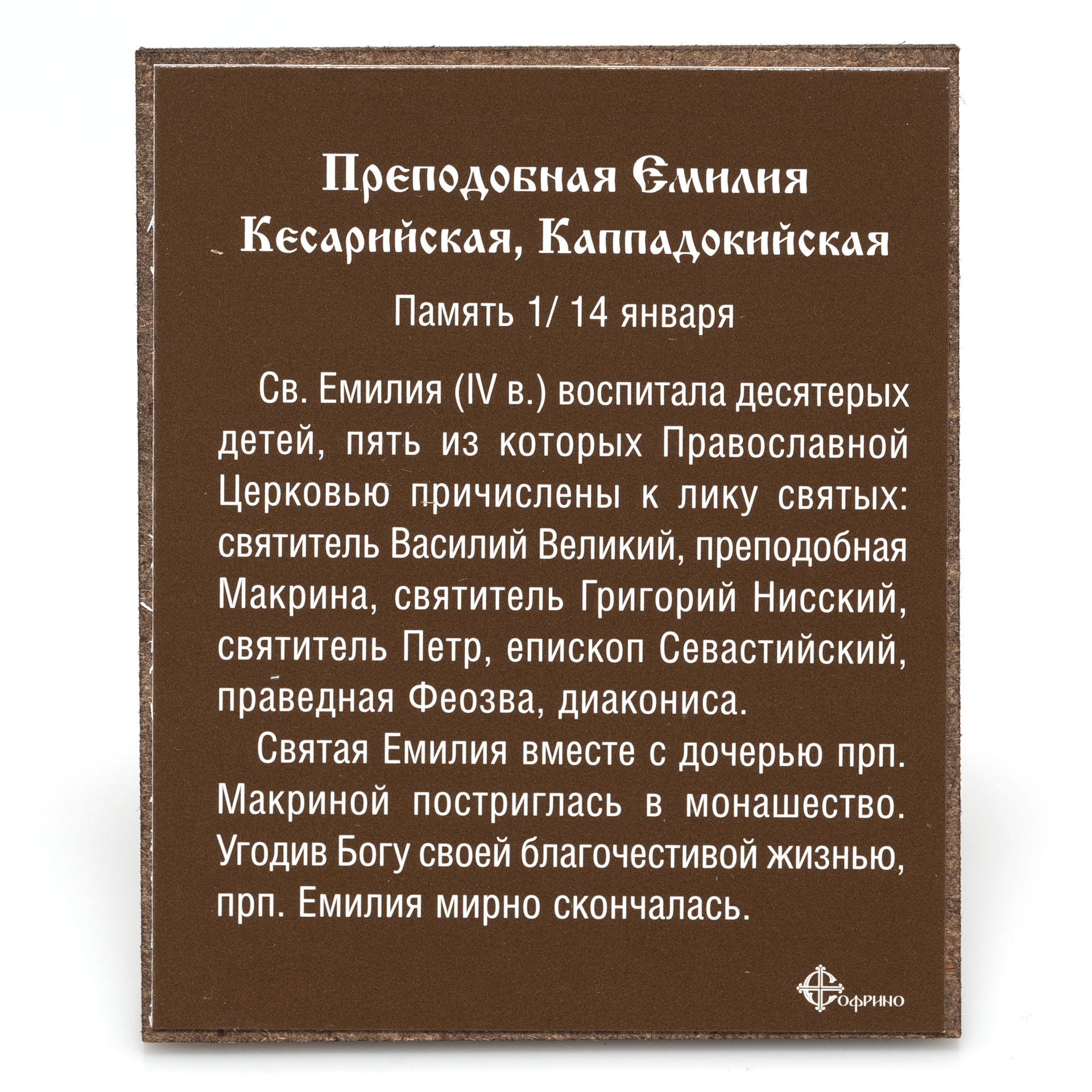 Икона на деревянном планшете 6х9 двойное тиснение, аннотация, упаковка Емилия Каппадокийская, прп., (2)