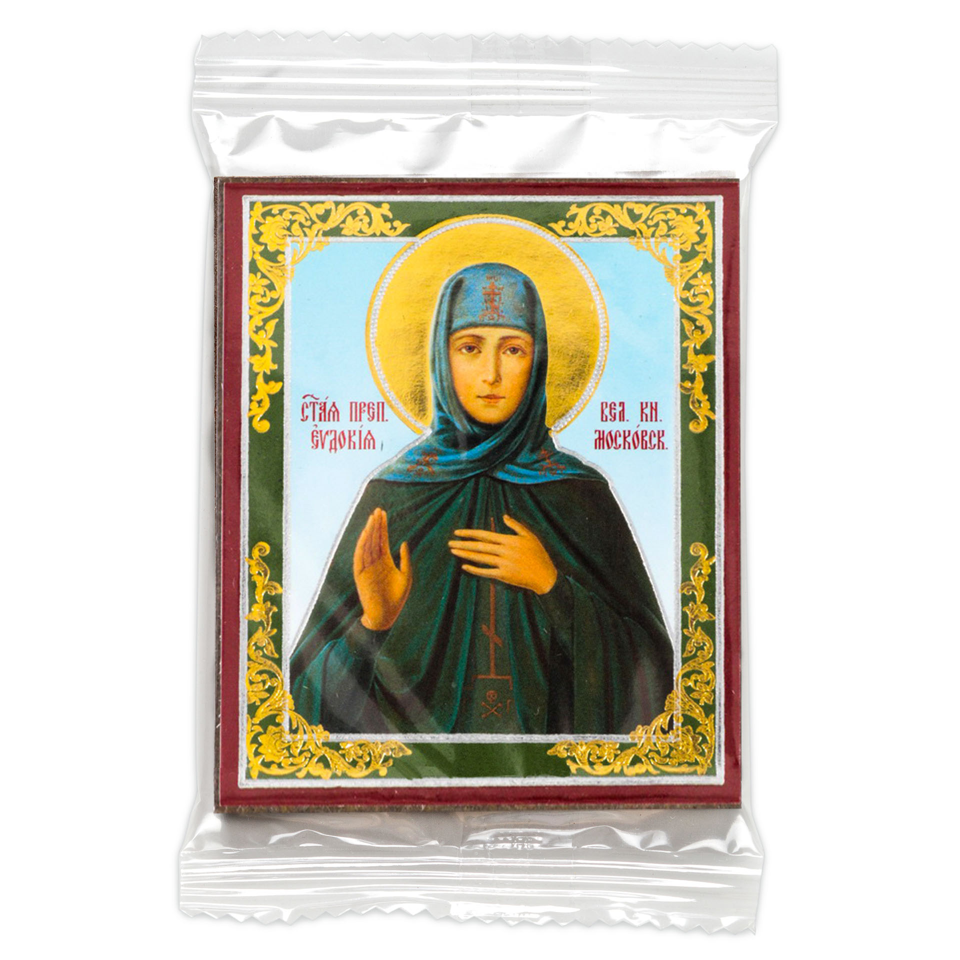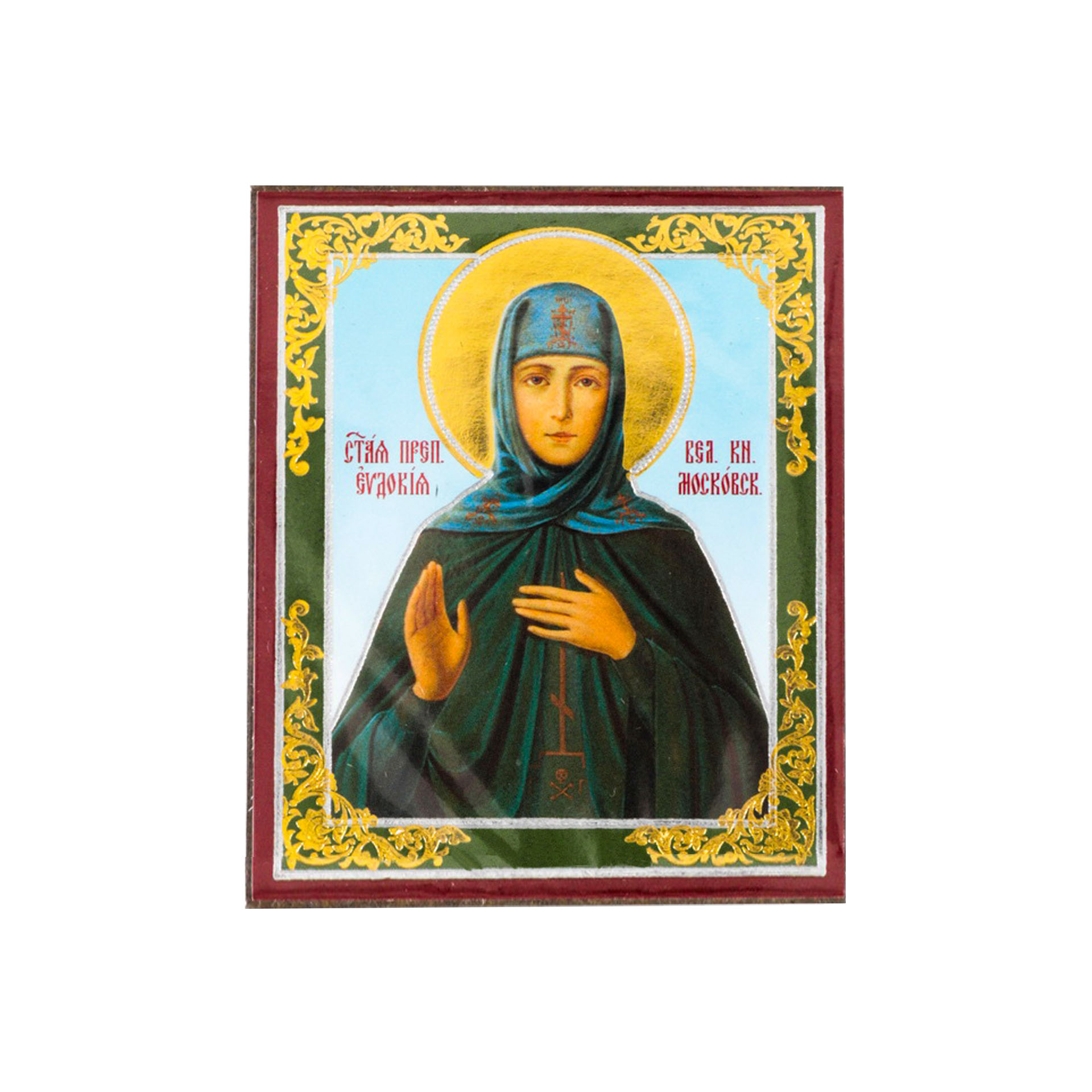 Икона на деревянном планшете 6х9 двойное тиснение, аннотация, упаковка Евдокия прп. (Евфросиния Московская) (2)