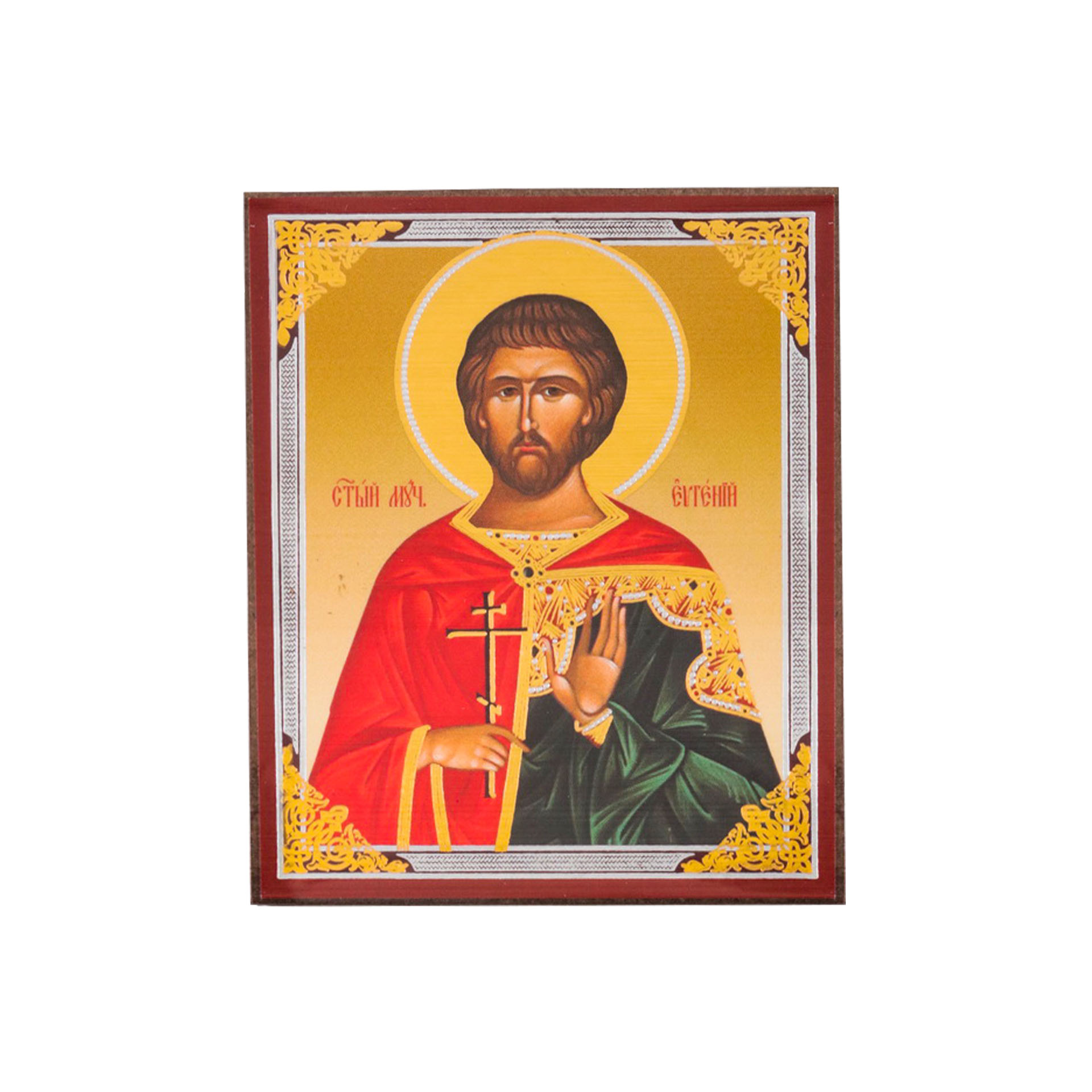 Икона на деревянном планшете 6х9 двойное тиснение, аннотация, упаковка Евгений