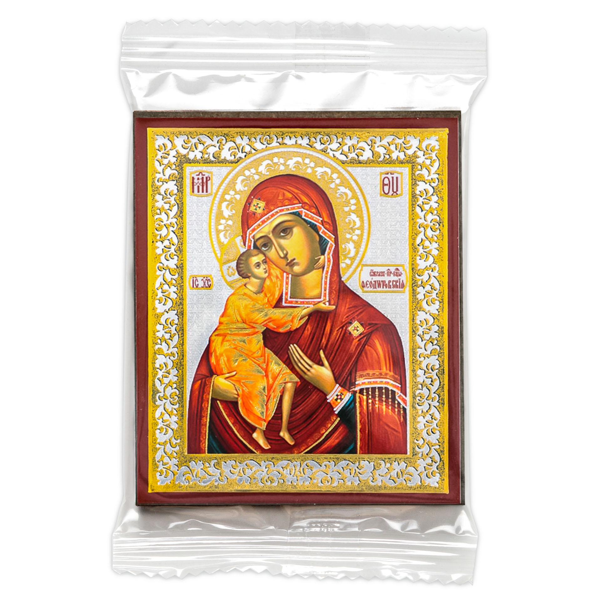 Икона на деревянном планшете 6х9 двойное тиснение, аннотация, упаковка Феодоровская БМ 2