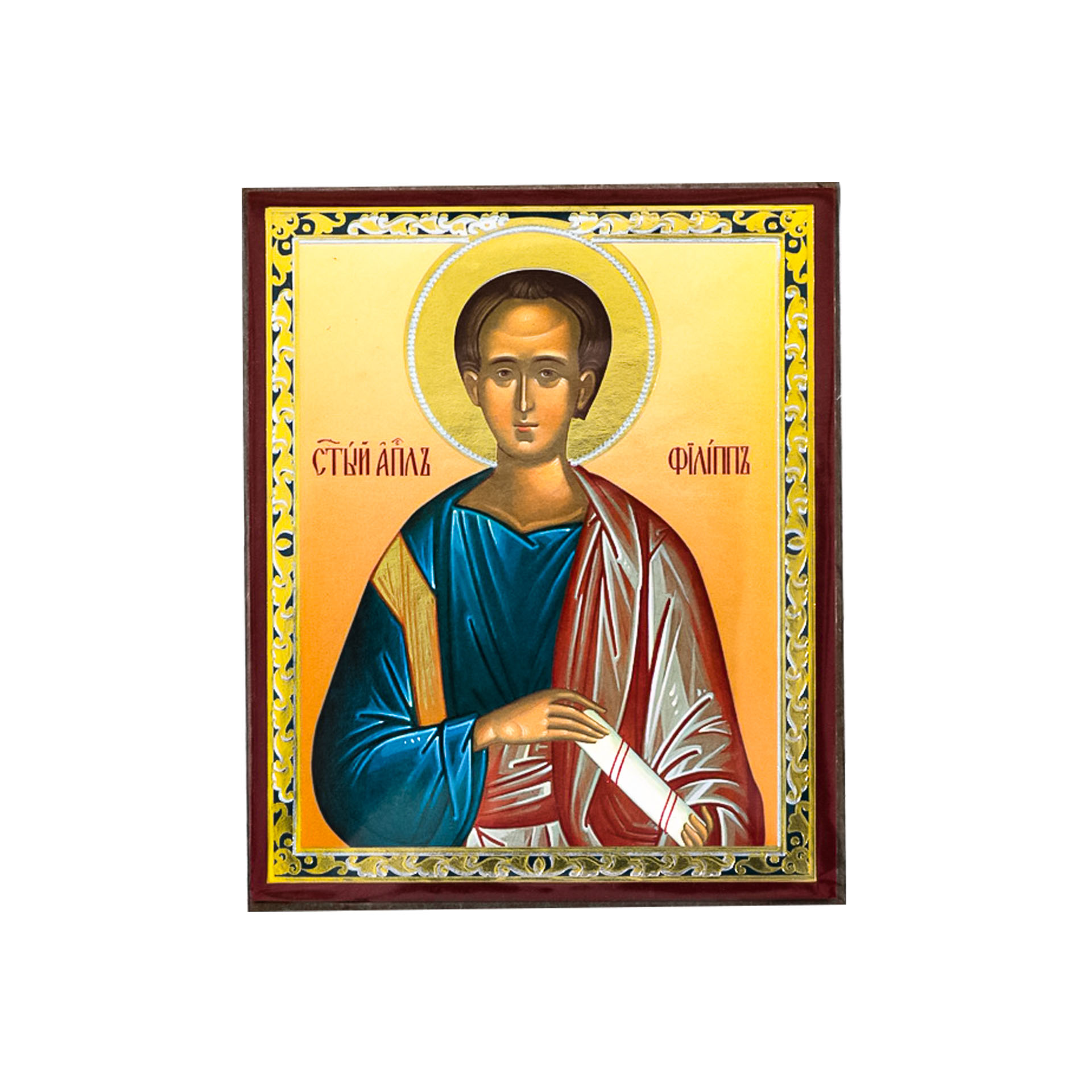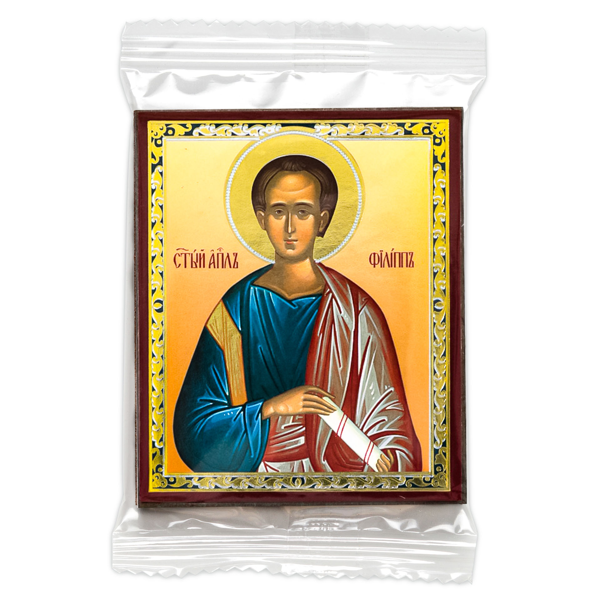 Икона на деревянном планшете 6х9 двойное тиснение, аннотация, упаковка Филипп 2