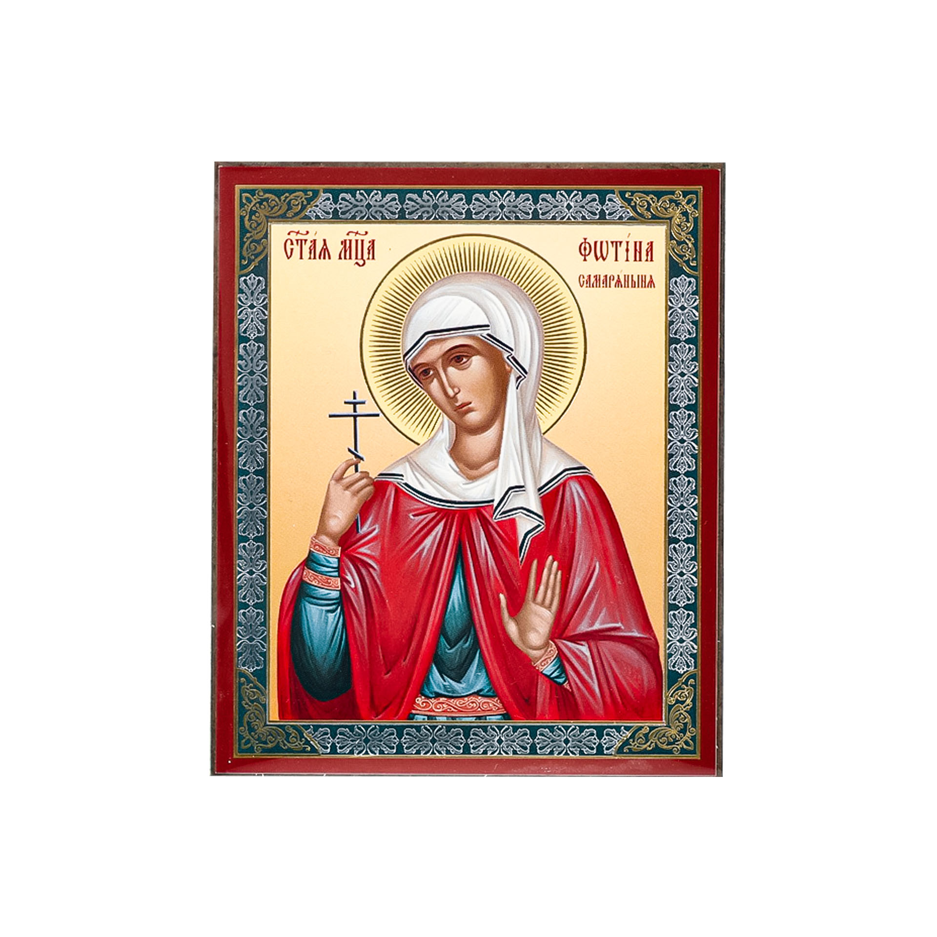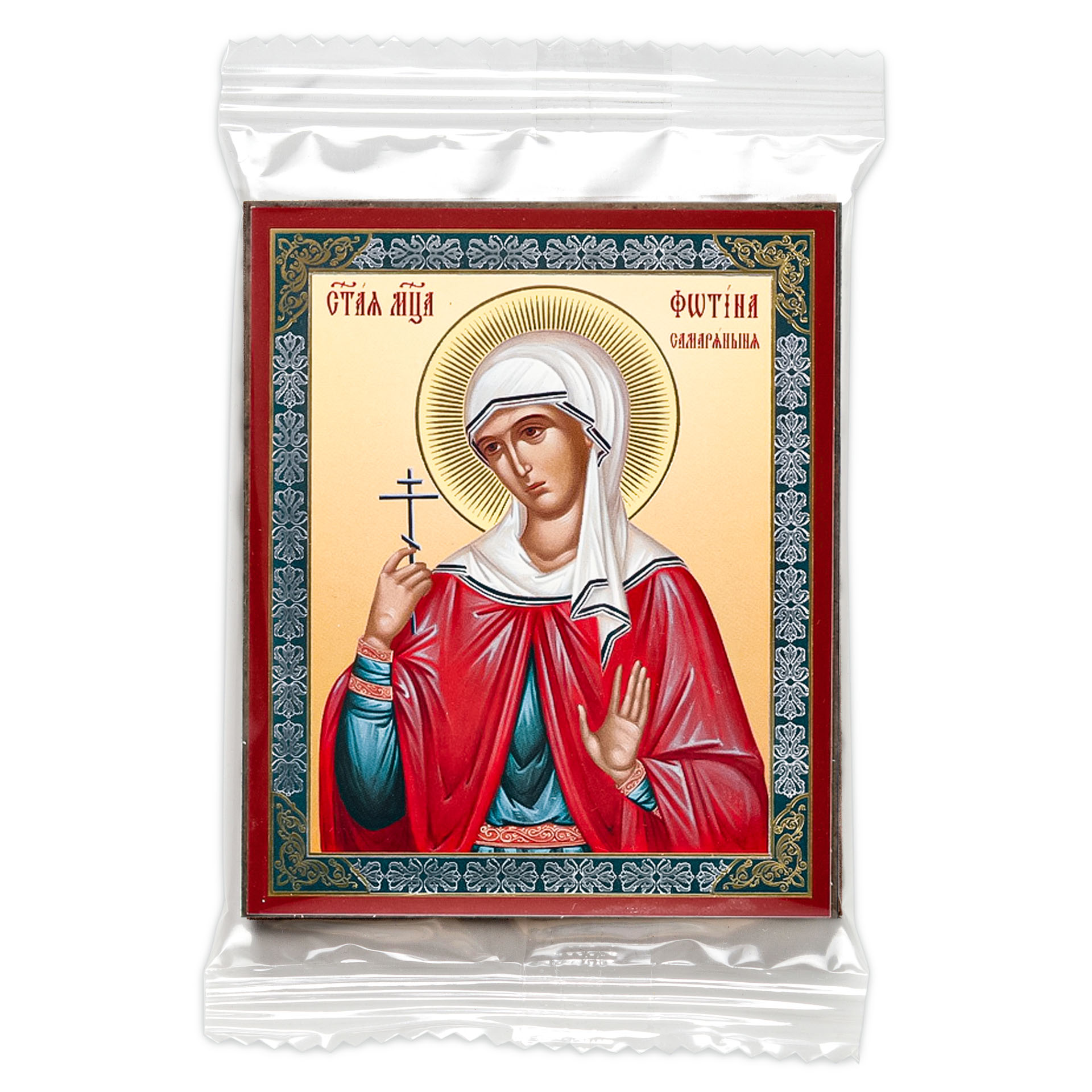 Икона на деревянном планшете 6х9 двойное тиснение, аннотация, упаковка Фотина Самаряныня