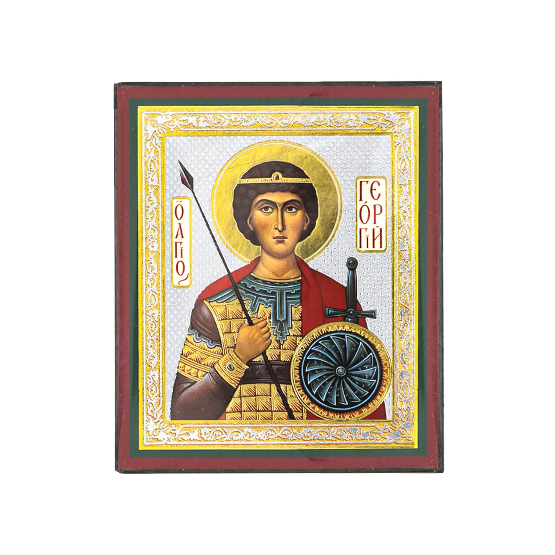 Икона на деревянном планшете 6х9 двойное тиснение, аннотация, упаковка Георгий Победоносец 2