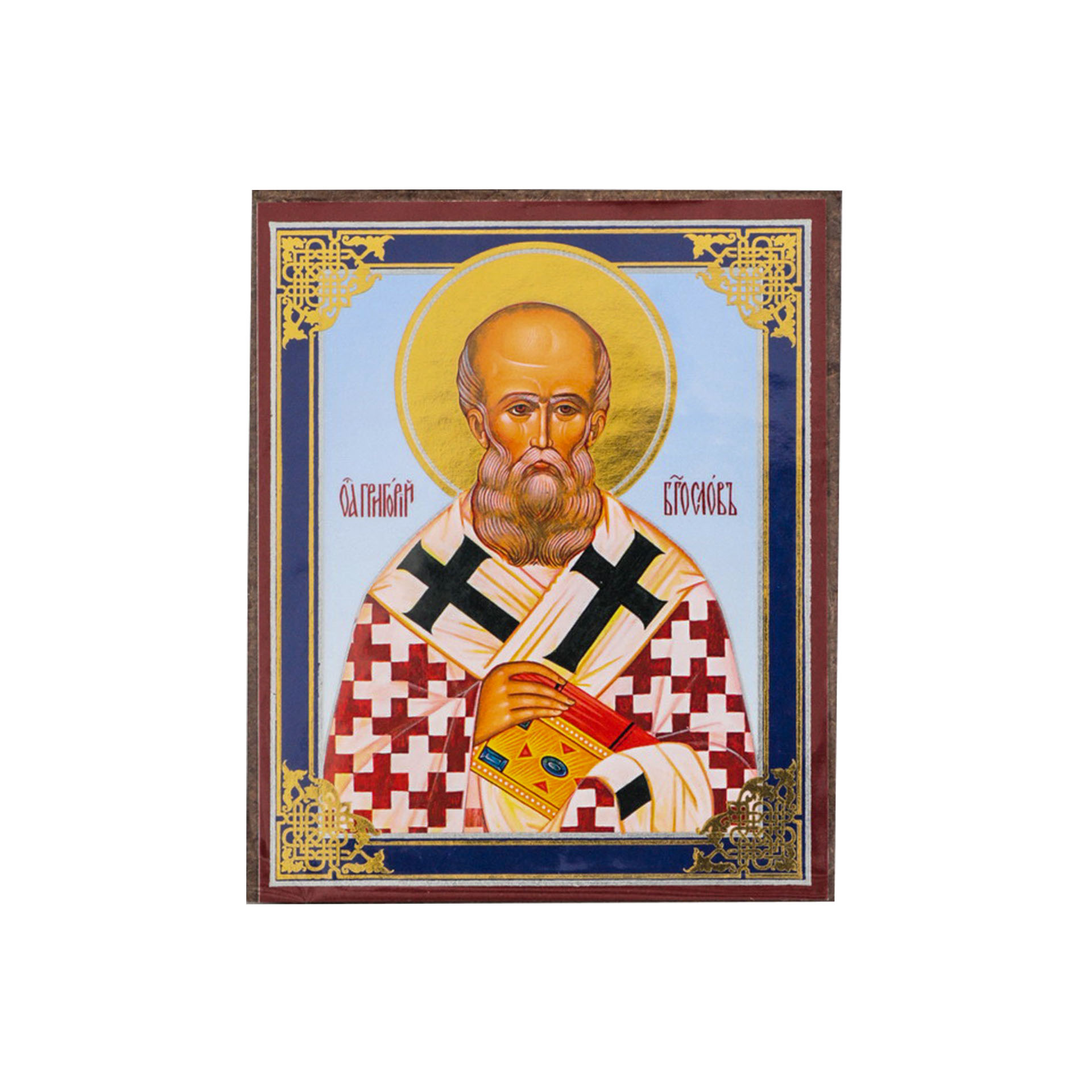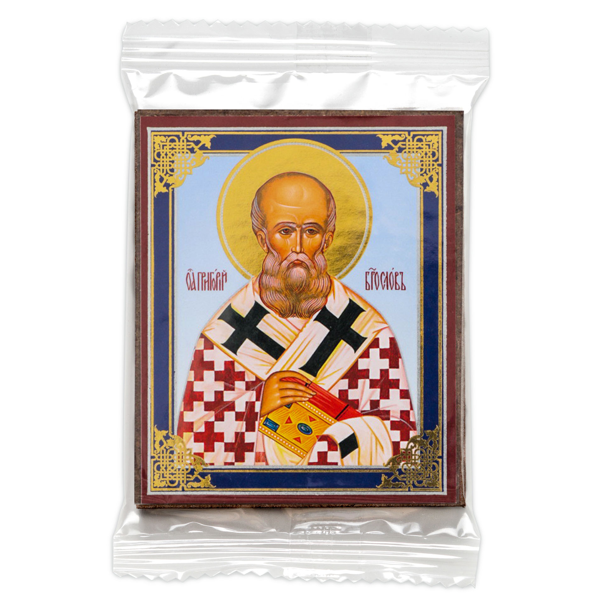 Икона на деревянном планшете 6х9 двойное тиснение, аннотация, упаковка Григорий Богослов
