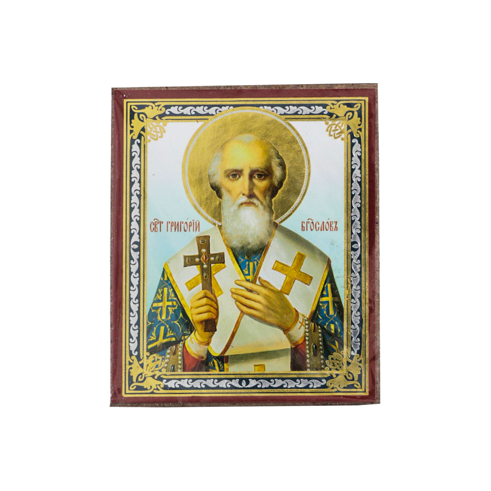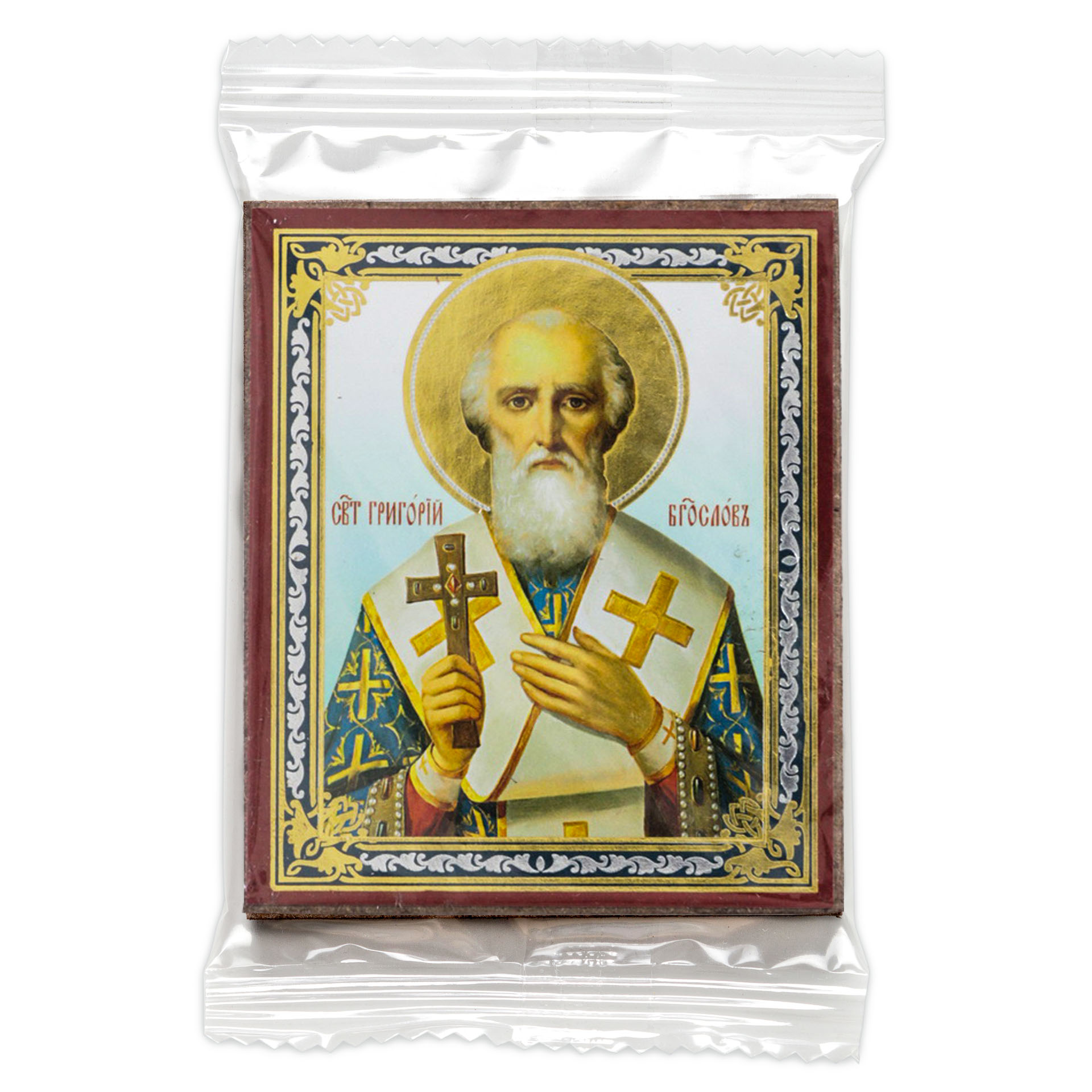 Икона на деревянном планшете 6х9 двойное тиснение, аннотация, упаковка Григорий Богослов 2