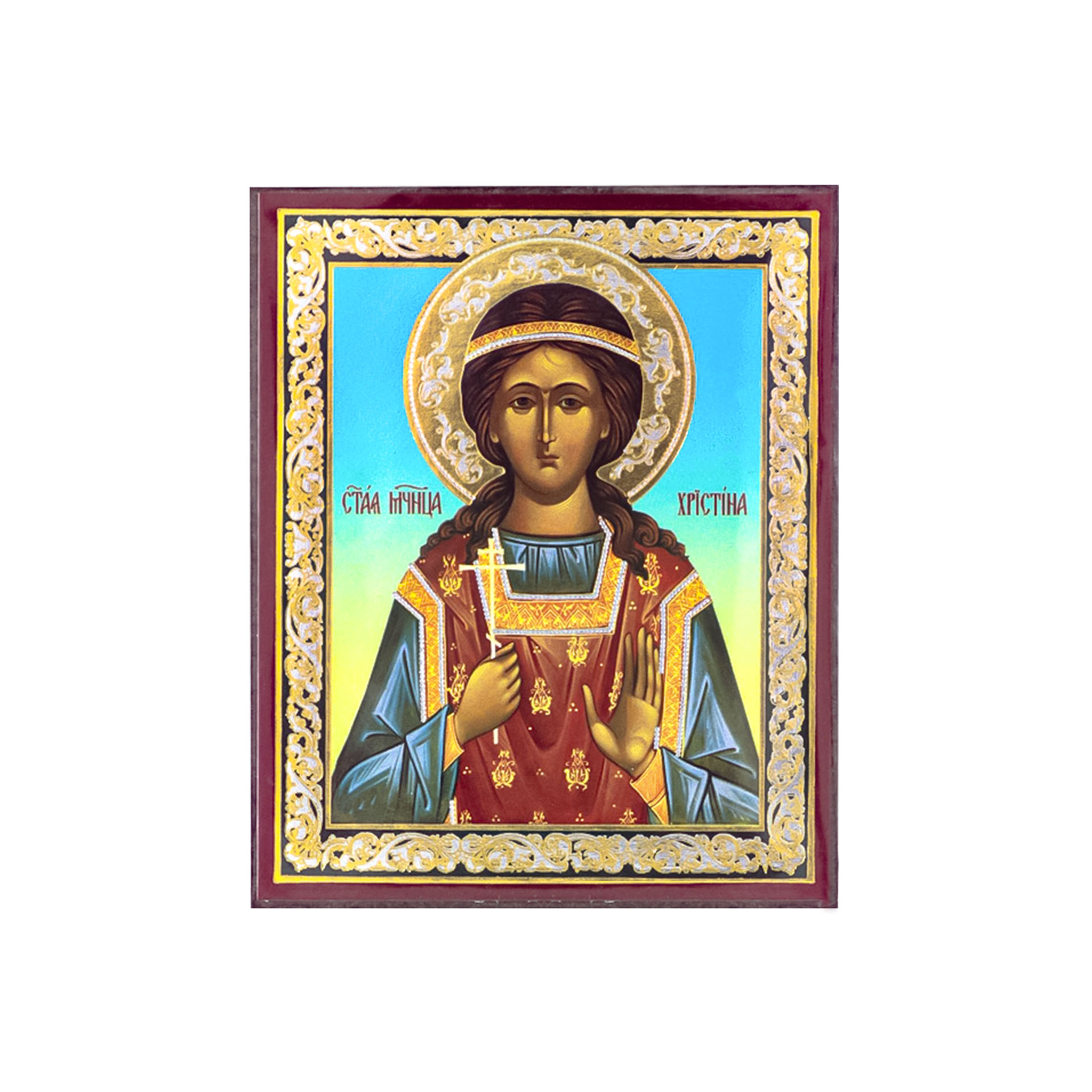 Икона на деревянном планшете 6х9 двойное тиснение, аннотация, упаковка Христина