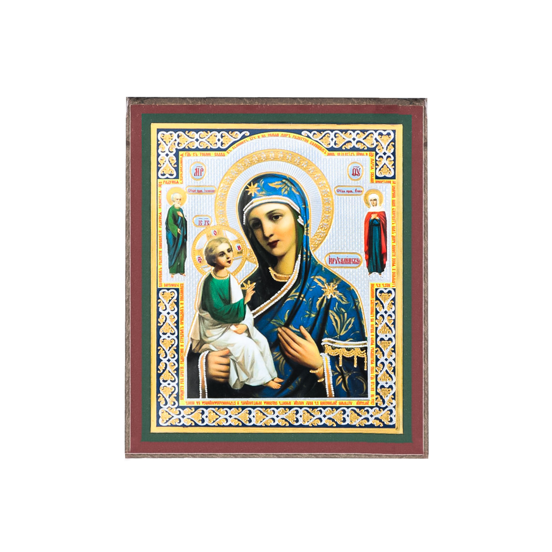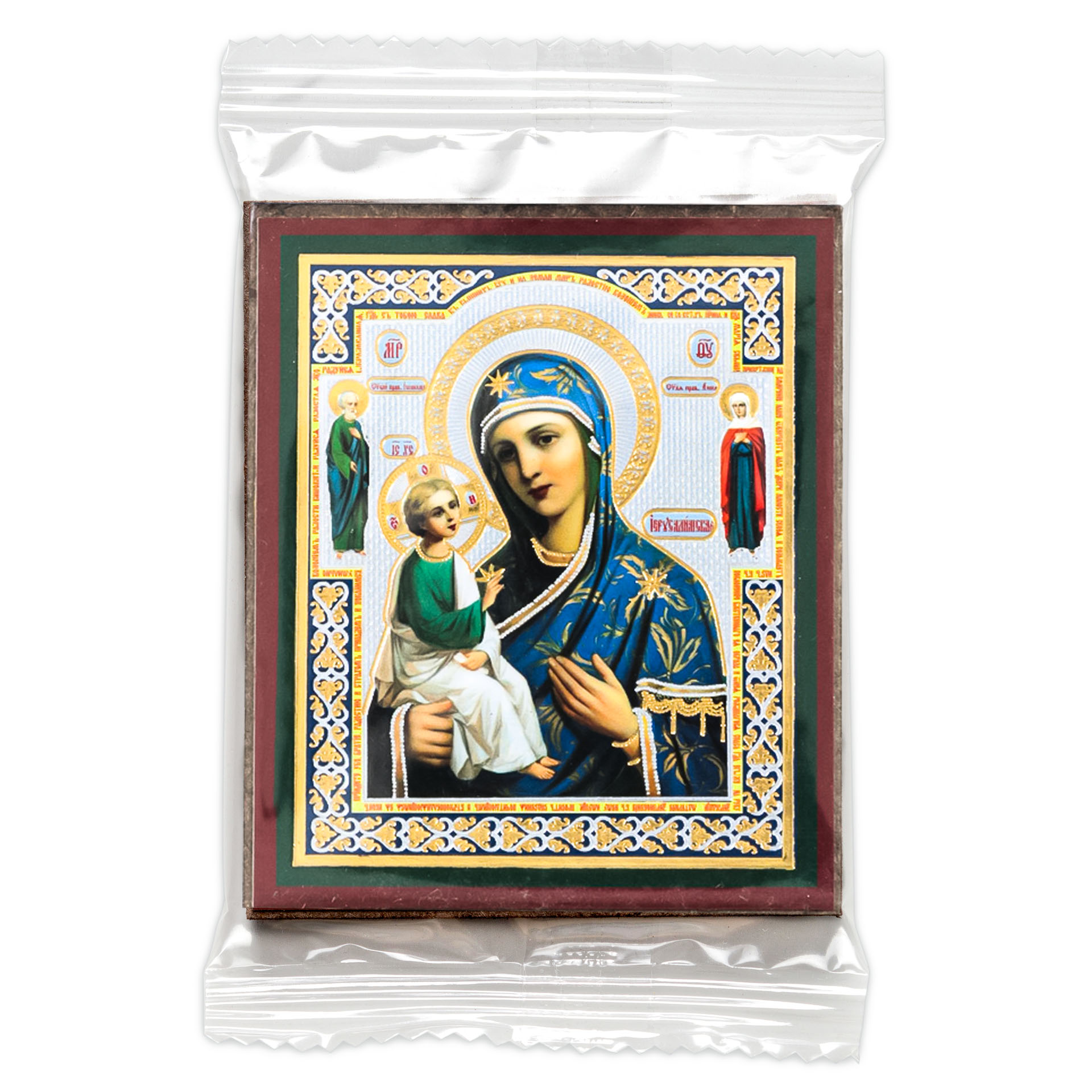 Икона на деревянном планшете 6х9 двойное тиснение, аннотация, упаковка Иерусалимская с предстоящими