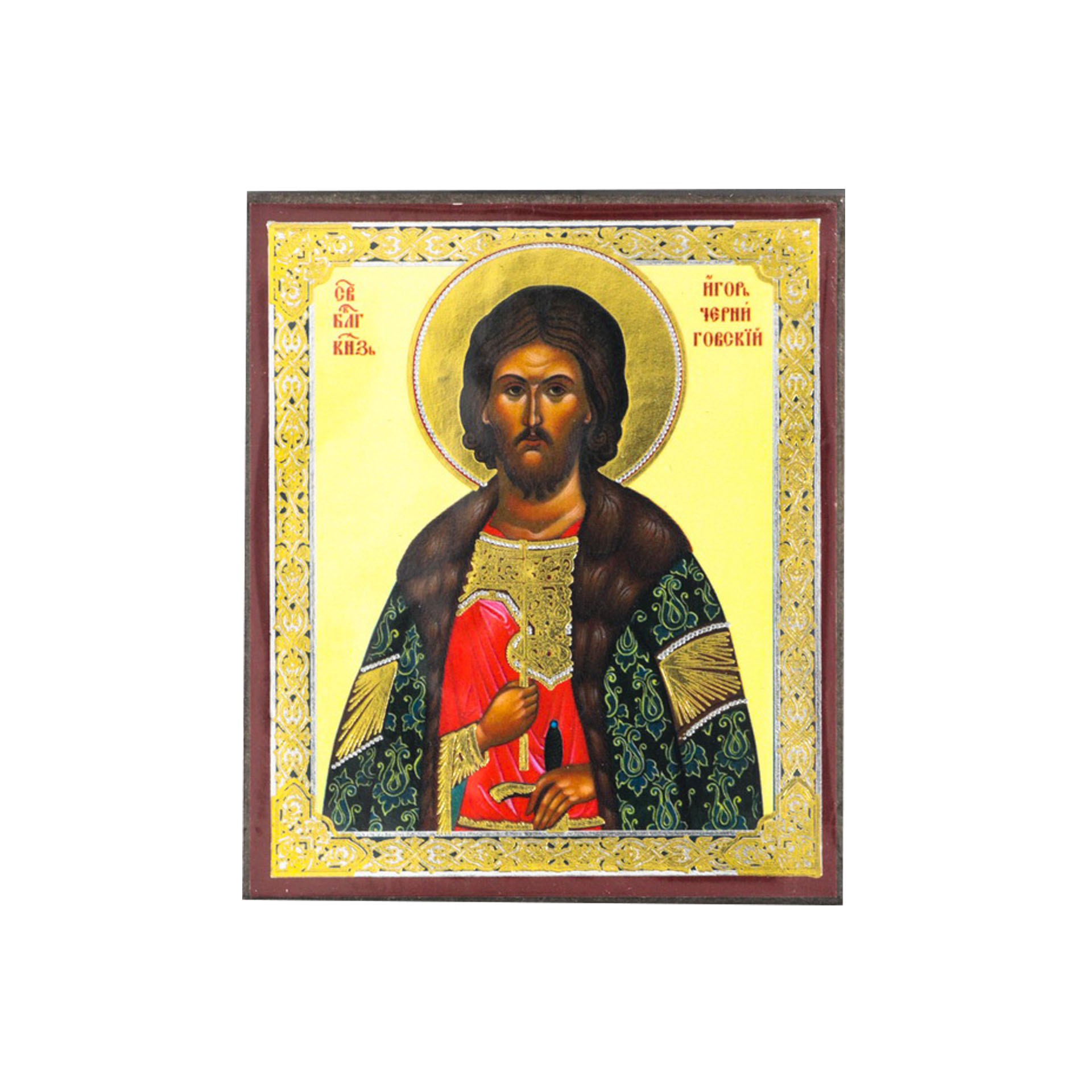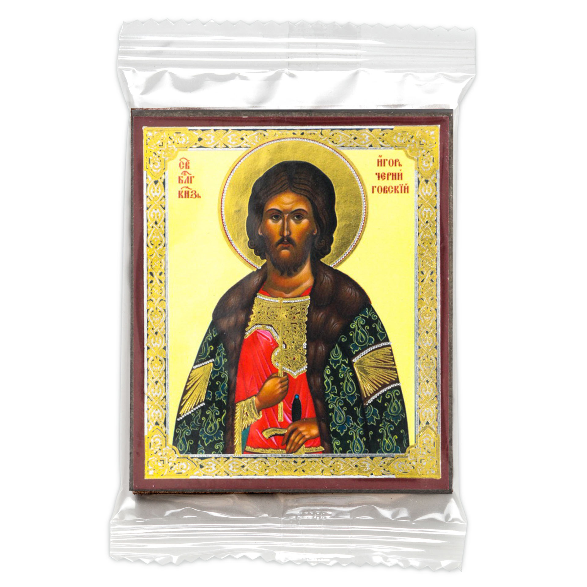 Икона на деревянном планшете 6х9 двойное тиснение, аннотация, упаковка Игорь, князь Черниговский 2
