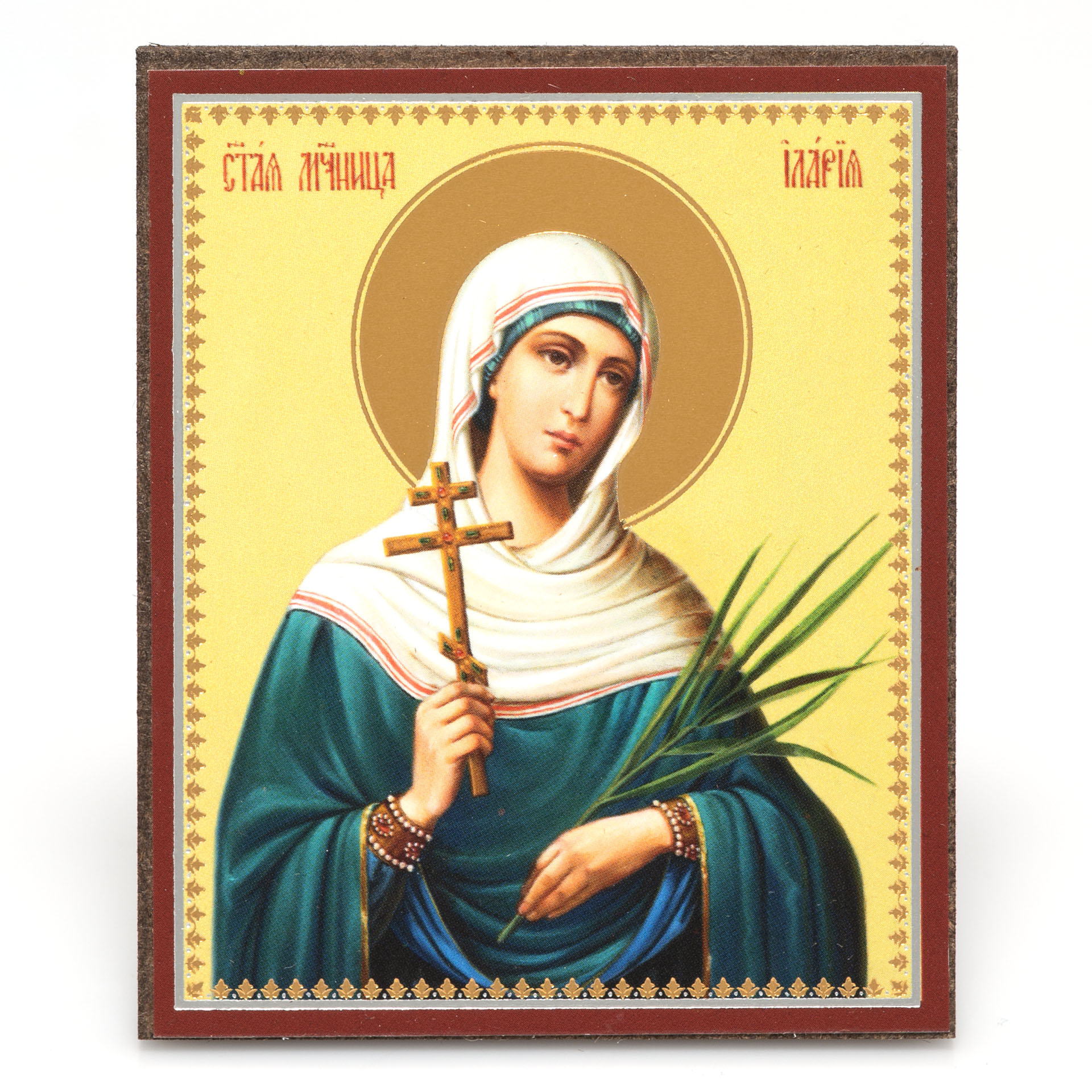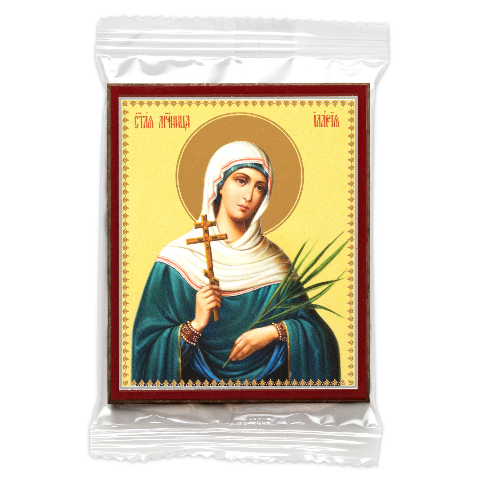 Икона на деревянном планшете 6х9 двойное тиснение, аннотация, упаковка Илария
