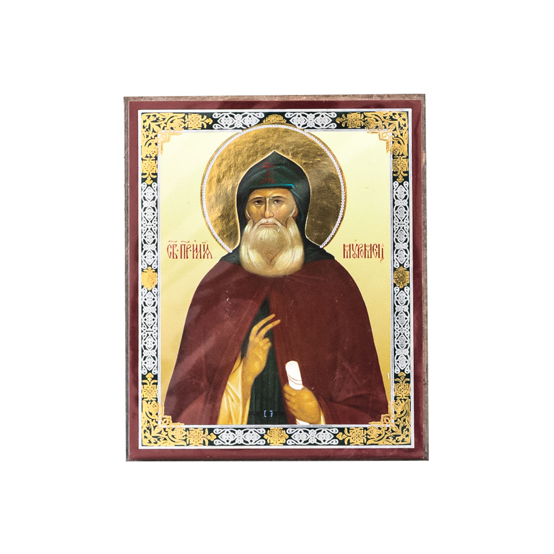 Икона на деревянном планшете 6х9 двойное тиснение, аннотация, упаковка Илия Муромец