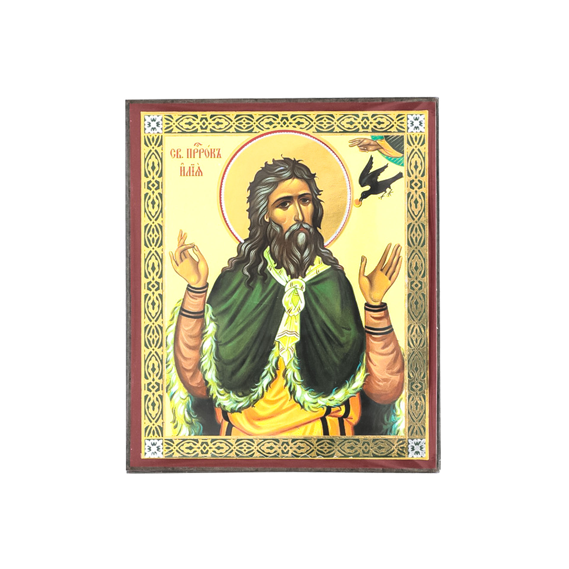 Икона на деревянном планшете 6х9 двойное тиснение, аннотация, упаковка Илия Пророк 4