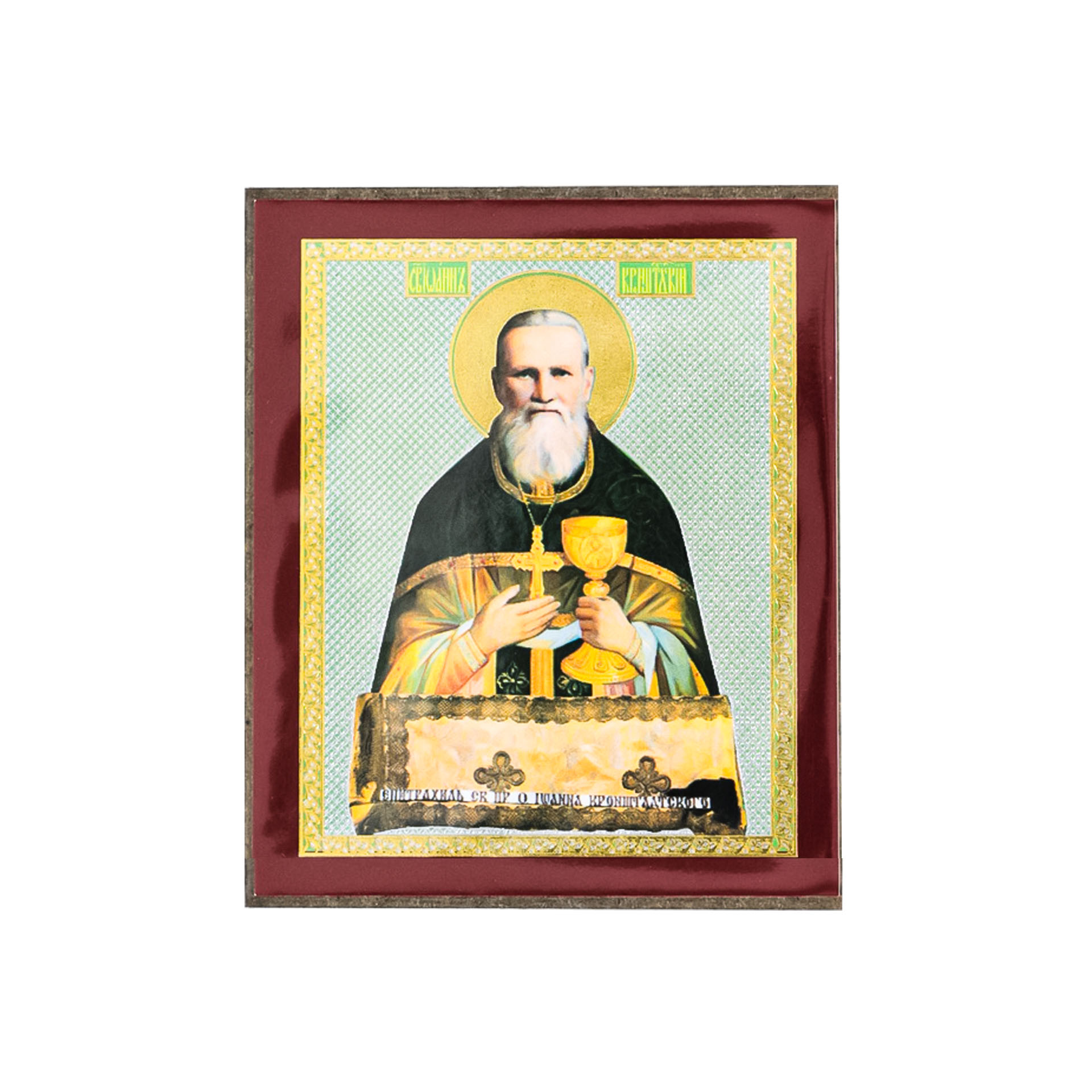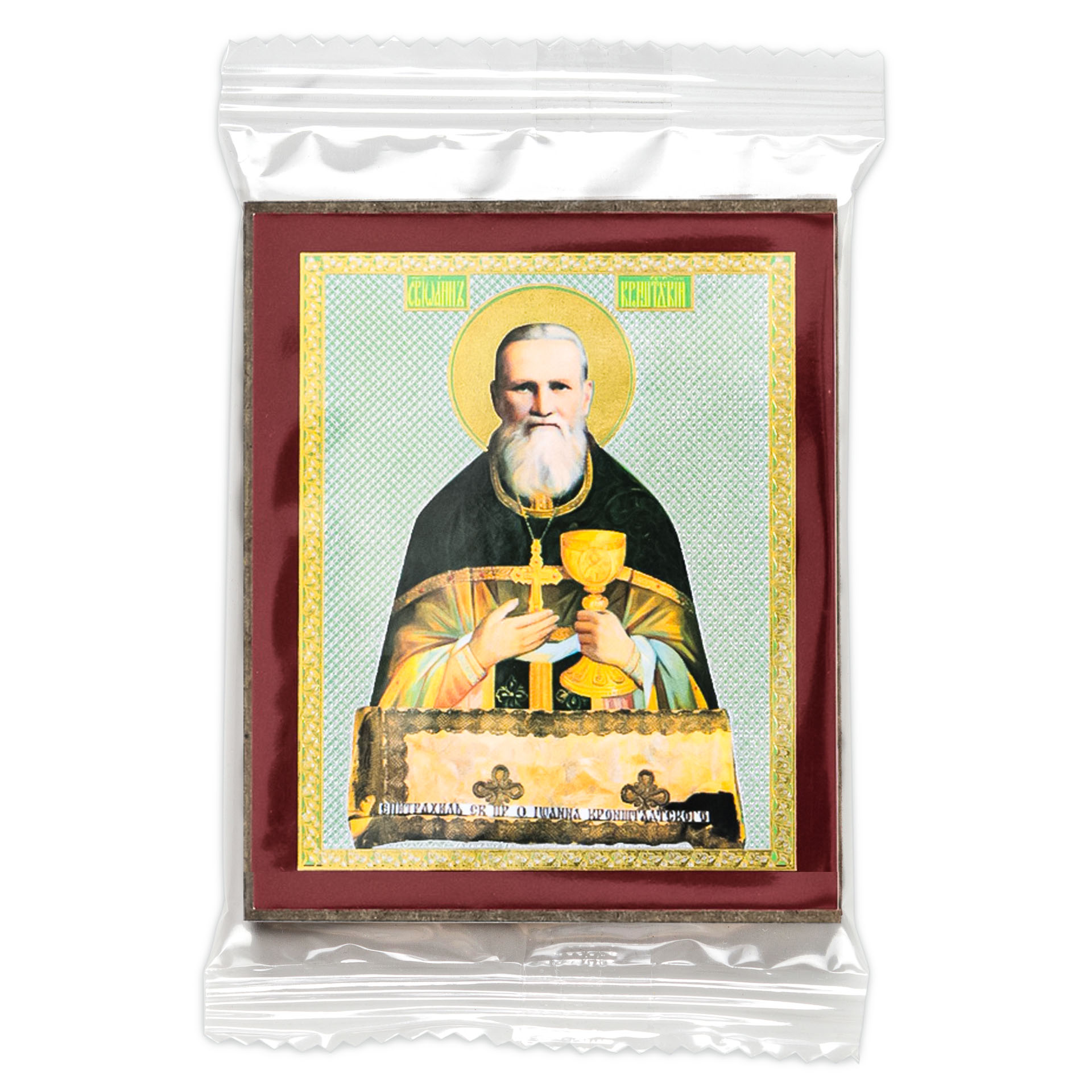 Икона на деревянном планшете 6х9 двойное тиснение, аннотация, упаковка Иоанн Кронштадтский