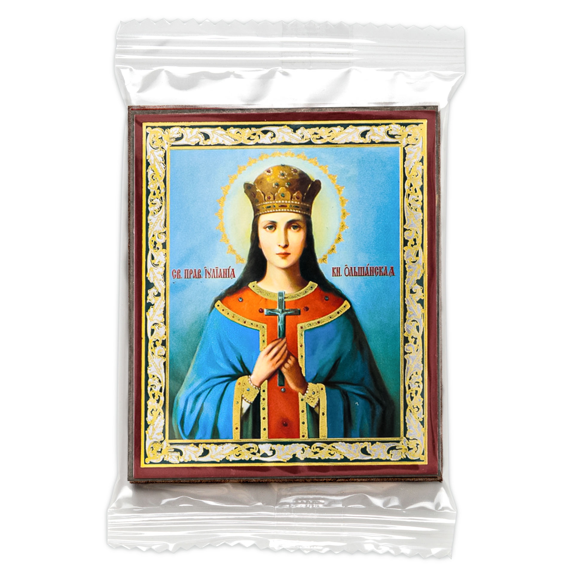 Икона на деревянном планшете 6х9 двойное тиснение, аннотация, упаковка Иулиания Ольшанская, прав. (КП)