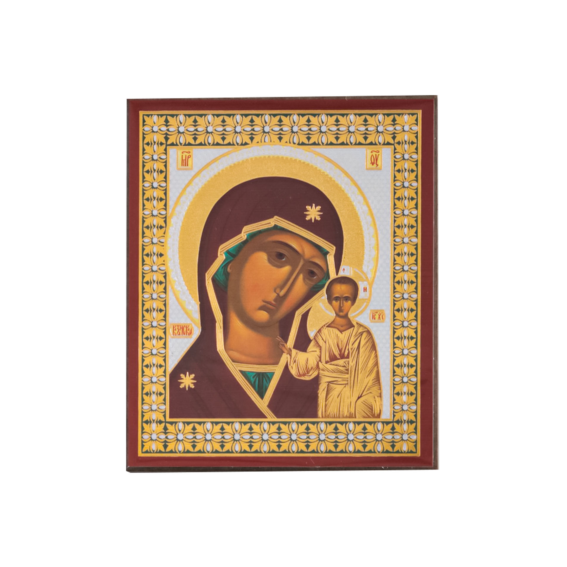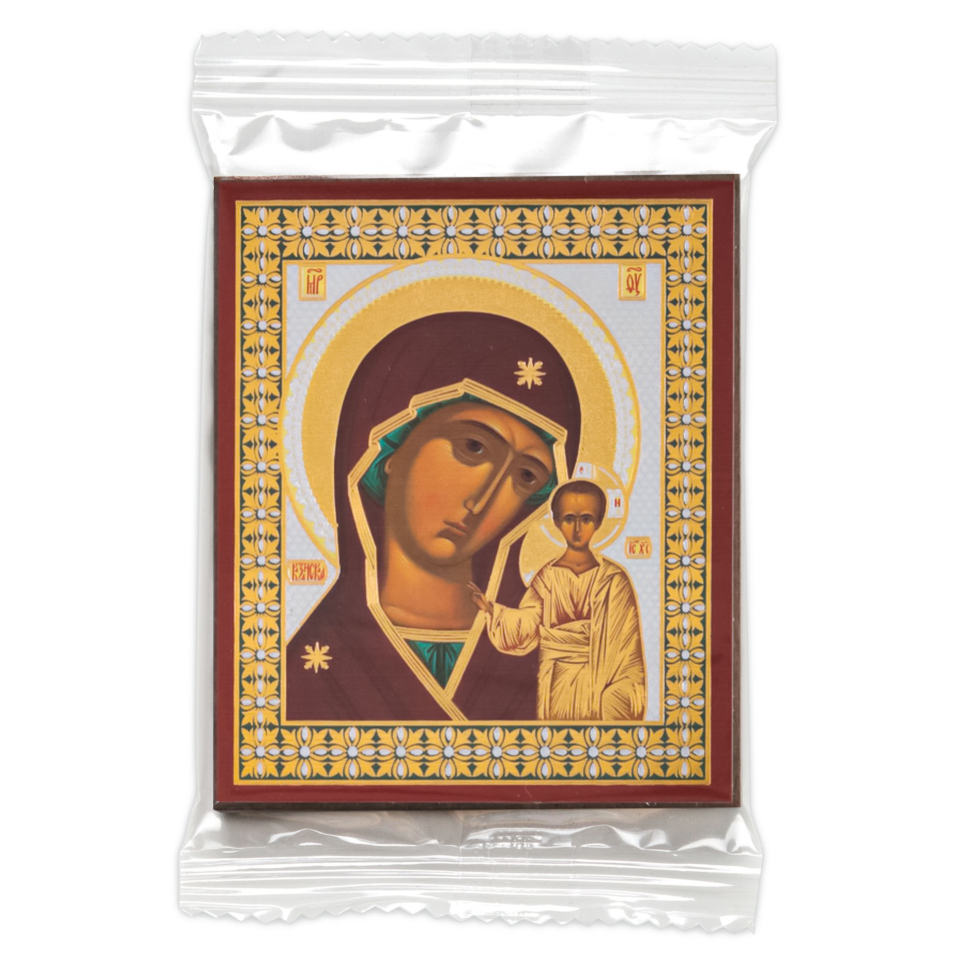 Икона на деревянном планшете 6х9 двойное тиснение, аннотация, упаковка Казанская БМ 8
